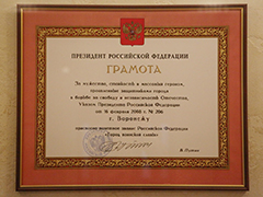 От всей души поздравляем ныне здравствующих ветеранов – Митрофана Москалева, Василия Карнушина, Антонину Гавриленко, Ивана Осадчука, Анну Кондратьевну, Алексея Альпакова, Владимира Нежельских, Ивана Писарева, которые участвовали в освобождении, разминировании и восстановлении Воронежа. Безусловно, статус города воинской славы – это их высокая и справедливая награда, также как и их боевых товарищей - воронежцев - ополченцев и бойцов Красной армии, отстоявших наш родной город.