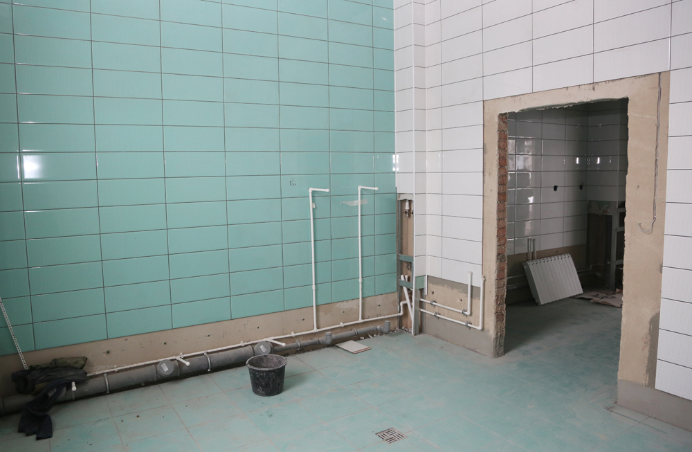 Так, например, главе показали уже оштукатуренные стены в корпусах блока, где будут учиться младшие школьники. В части кабинетов, а они здесь не стандартные – с разделяющими учебный класс и коридор большими витражами, уже началась покраска стен.