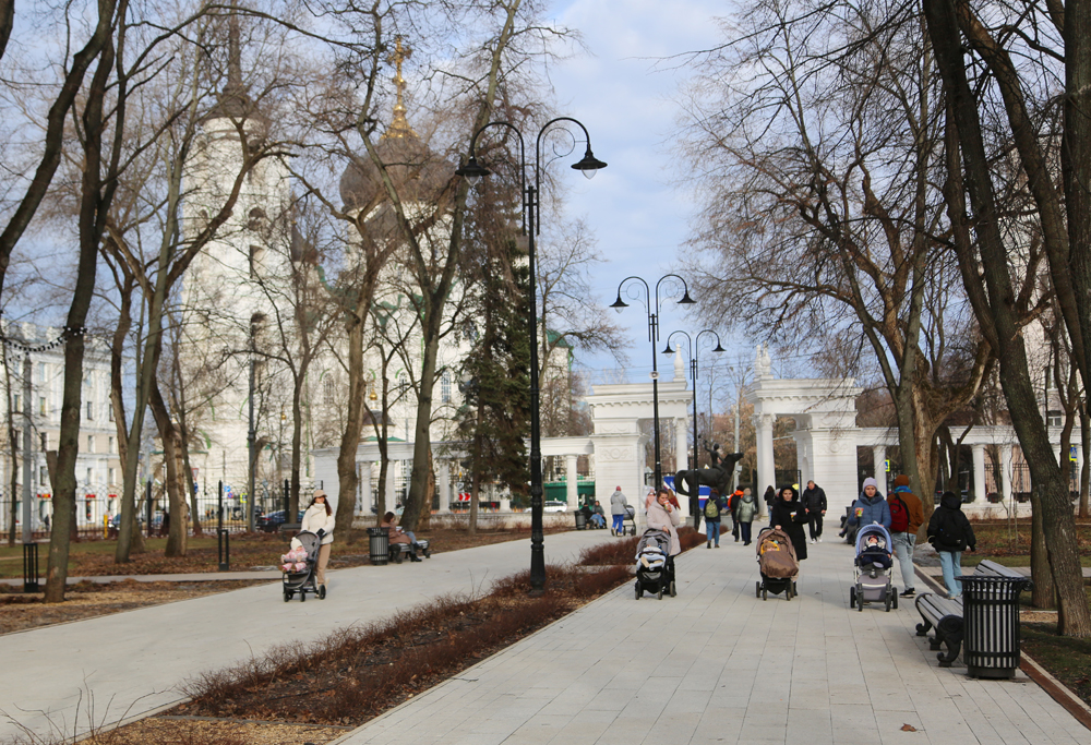 Напомним, что в соответствии с концепцией благоустройства парка было выполнено уникальное для Воронежа озеленение территории в стиле «Белый сад» с высадкой кустарников и многолетних цветников преимущественно со светлыми листьями и цветами. Для этого использовали более 20-ти различных видов растений.