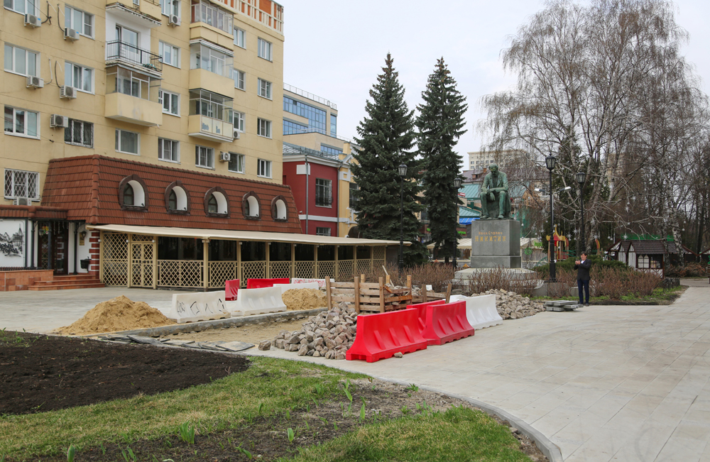 Она добавила, что у памятника Пятницкому будет клумба в стиле «Русское село» с ромашками, а также будет большой газон, в том числе у приствольных квадратов деревьев. У памятника Платонову будут также обустроены цветники.