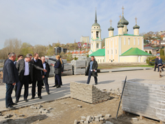 Вадим Кстенин прошел всю территорию благоустройства, представители заказчика и подрядной организации доложили ему о текущей ситуации, а также о ряде вопросов, которые возникли в ходе производства работ.