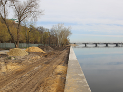 Сейчас на набережной идет строительство подпорной стены на причале у Чернавского моста, устройство вело- и беговой дорожек. Их конфигурация по поручению главы скорректирована таким образом, чтобы исключить вырубку здоровых деревьев.