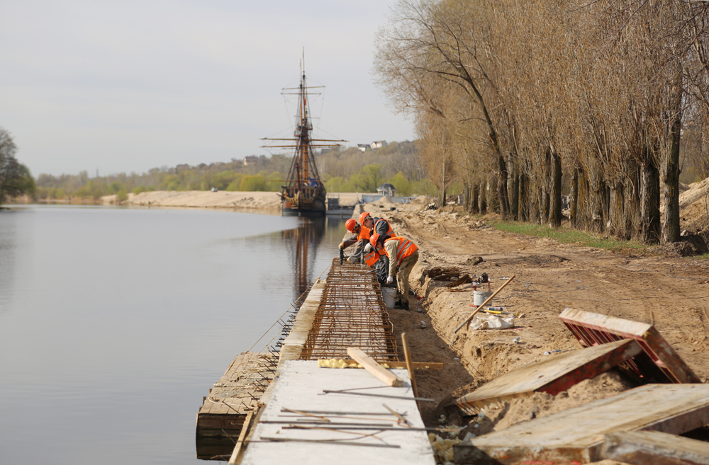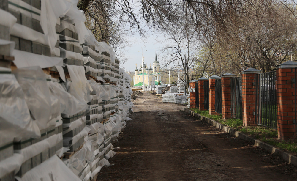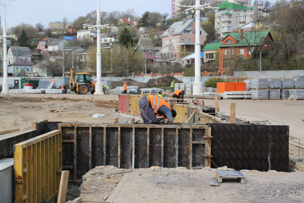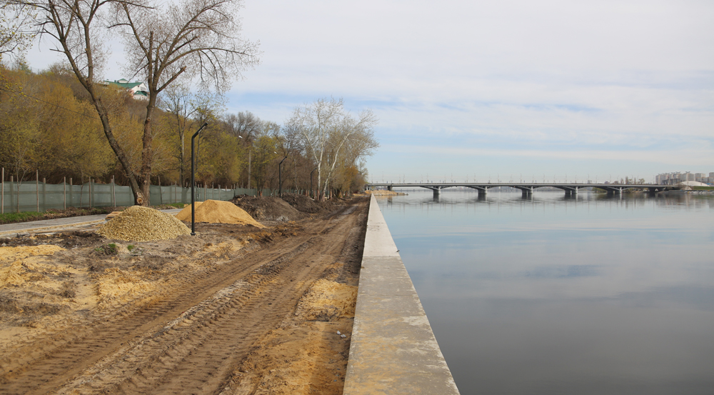 Сейчас на набережной идет строительство подпорной стены на причале у Чернавского моста, устройство вело- и беговой дорожек. Их конфигурация по поручению главы скорректирована таким образом, чтобы исключить вырубку здоровых деревьев.