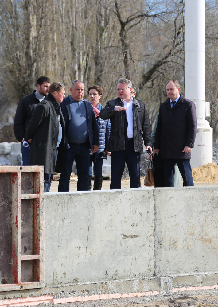 Вадим Кстенин прошел всю территорию благоустройства, представители заказчика и подрядной организации доложили ему о текущей ситуации, а также о ряде вопросов, которые возникли в ходе производства работ.