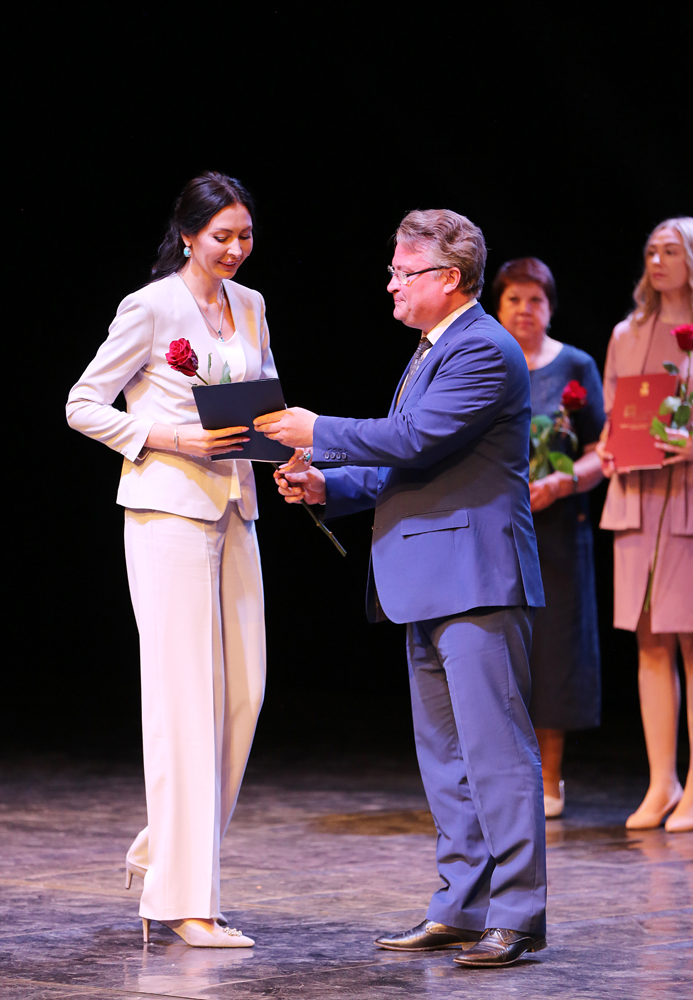 Кроме того, мэр Воронежа поблагодарил медицинских работников за добросовестный подвижнический труд, самоотверженность, отзывчивость и сердечность. – Вы – жертвуете собой, своими интересами ради служения людям, особенно ярко это проявляется в сложные годы пандемии, когда вы боролись за каждую жизнь, когда весь мир с замиранием сердца следил за Вашей работой, когда в благодарность общество проводило многочисленную акцию в поддержку врачей и Вы, сообща, победили. Мы искренне преклоняемся перед Вашими коллегами, отправившимися в зону СВО и перед теми, кто спасает жизни наших бойцов в госпиталях, – добавил Вадим Юрьевич.Затем Вадим Кстенин вручил отличившимся работникам отрасли почетные грамоты администрации Воронежа и благодарности.