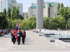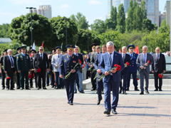Участники церемонии возложили венки, цветы и почтили память погибших минутой молчания.
