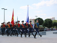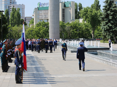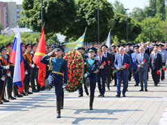 Собравшиеся почтили память бойцов, павших в боях за Воронеж, и возложили венки и цветы к памятнику Ивана Черняховского. Почетный караул военно-воздушной академии прошел торжественным маршем, отдав воинские почести героям войны.