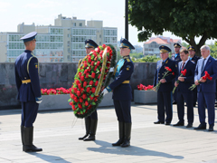 Традиционно состоялась торжественная церемония возложения венков и цветов у памятника Ивану Даниловичу Черняховскому.