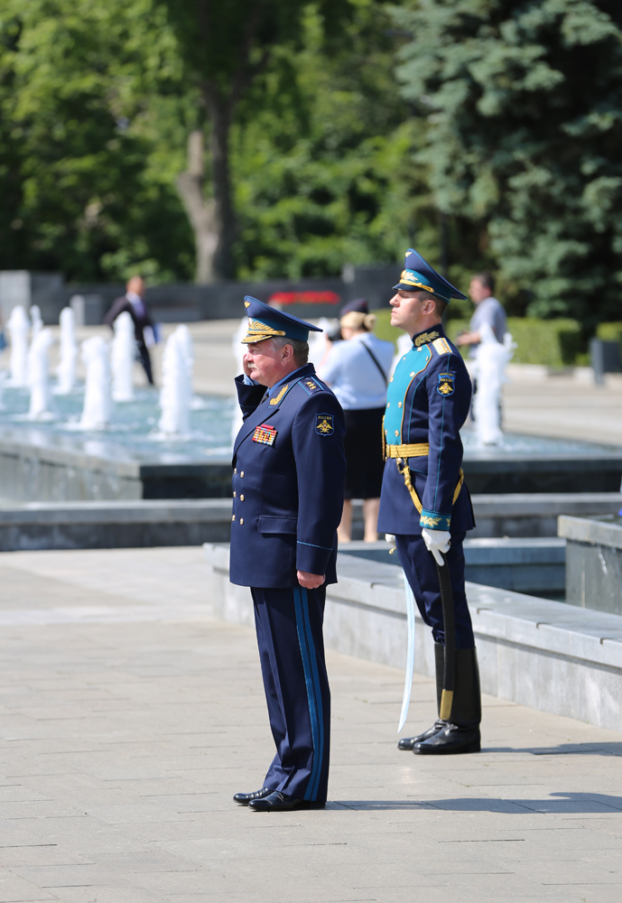 Собравшиеся почтили память бойцов, павших в боях за Воронеж, и возложили венки и цветы к памятнику Ивана Черняховского. Почетный караул военно-воздушной академии прошел торжественным маршем, отдав воинские почести героям войны.