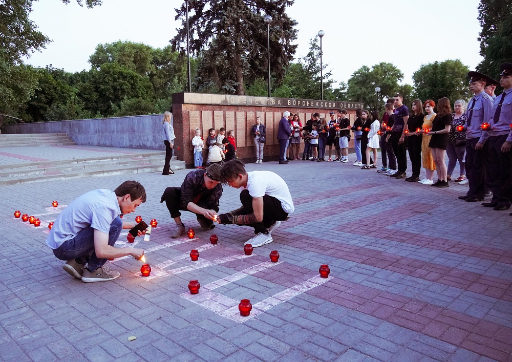 По инициативе управы Левобережного района Совета ветеранов войны и труда 21 июня в 21.00 перед вечным огнём Братской могилы № 6 (Ленинский проспект, 94), расположенной возле Музея-диорамы студенты и курсанты ФКОУ ВПО «Воронежский институт федеральной службы наказания», ГБПОУ ВО «Воронежский авиационный техникум им. В. П. Чкалова», ГБПОУ ВО «Воронежский колледж сварки и промышленных технологий», ГБПОУ ВО «Воронежский техникум промышленно-строительных технологий», представители общественности, ветераны правоохранительных органов, а также депутат воронежской городской Думы Николай Коржов собрались, чтобы принять участие во Всероссийском гражданско-патриотическом проекте, посвящённом Дню Памяти и скорби. – Наверное, не было на земле более чёрного дня, чем 22 июня сорок первого, и выпал он на долю нашего народа. Да только наш народ и смог вынести все тяготы Великой войны. Поэтому День памяти и скорби будет века напоминать нам о миллионах погибших, замученных в фашистской неволе, умерших в тылу от голода и лишений… А мы, дети, внуки и правнуки великих героев, сегодня обязаны делать всё, чтобы не допустить повторения подобного, – сказал Николай Коржов.Участники акции зажгли свечи, почтили минутой молчания погибших в годы Великой Отечественной войны.