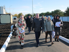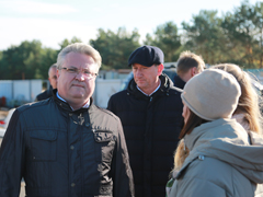 На Балашовской главу встретили его заместитель Людмила Бородина, и.о. вице-мэра по градостроительству Дмитрий Гладких, руководители управлений строительной политики и экологии Евгений Шишкин и Галина Воробьева.
