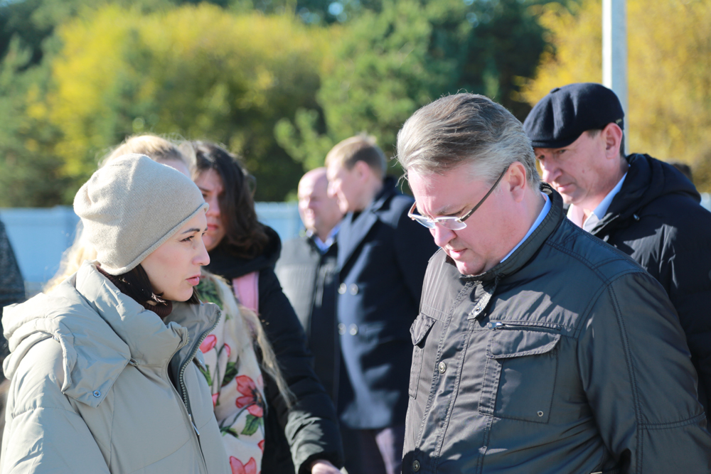 На Балашовской главу встретили его заместитель Людмила Бородина, и.о. вице-мэра по градостроительству Дмитрий Гладких, руководители управлений строительной политики и экологии Евгений Шишкин и Галина Воробьева.