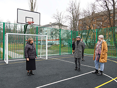 Руководитель управления экологии Галина Воробьева вместе с представителями подрядной организации проинспектировала завершенное благоустройство. На площадках появилось новое резиновое покрытие, полностью заменено ограждение, установлены баскетбольные стойки и ворота для мини-футбола.