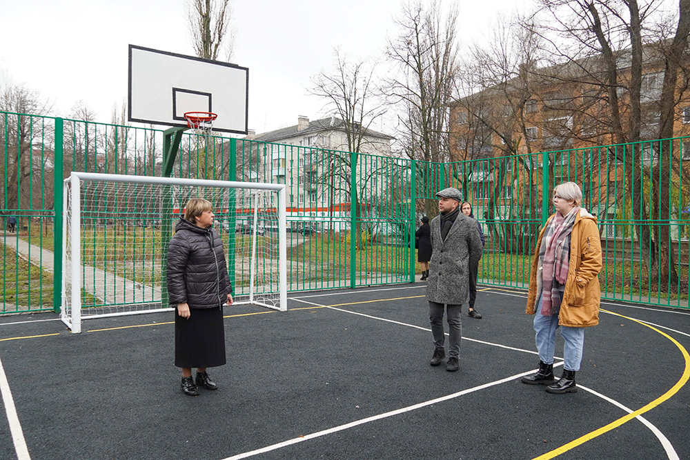 Руководитель управления экологии Галина Воробьева вместе с представителями подрядной организации проинспектировала завершенное благоустройство. На площадках появилось новое резиновое покрытие, полностью заменено ограждение, установлены баскетбольные стойки и ворота для мини-футбола.
