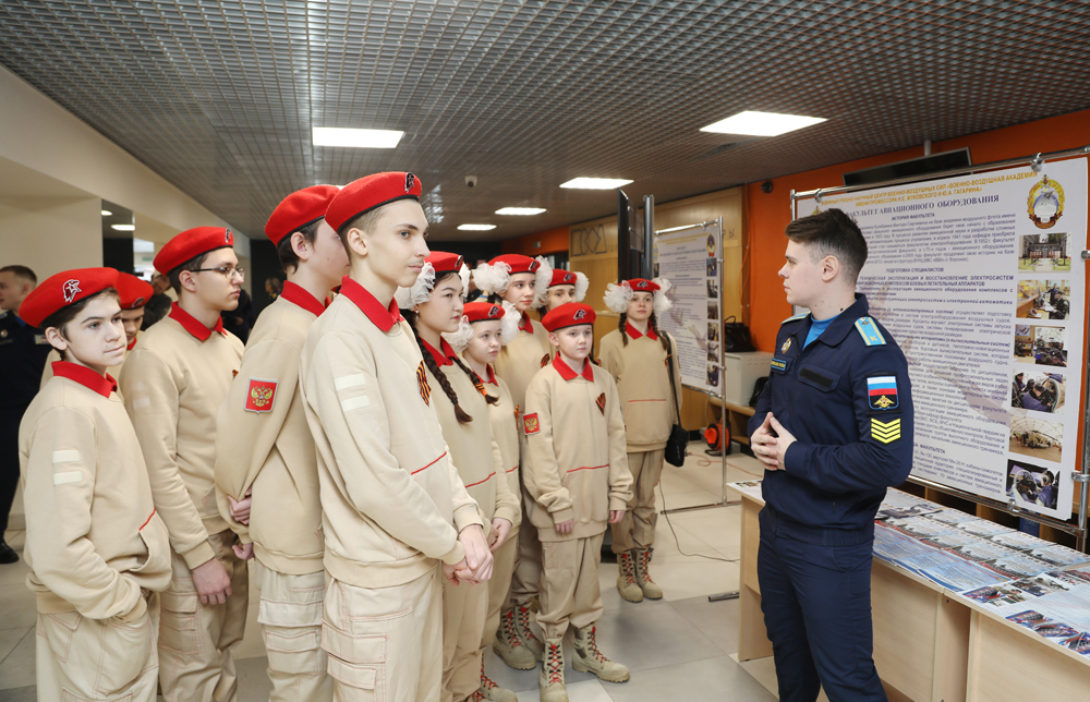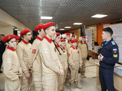 Для них развернулась тематическая выставка вооружения и снаряжения, организованная Военно-воздушной академией имени Н.Е. Жуковского и Ю.А. Гагарина. Юнармейцы увлеченно рассматривали экспозицию, примеряли обмундирование и даже смогли проверить свою меткость в электронном тире.