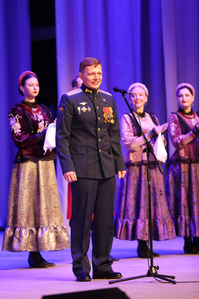 Юнармейцы проводили ветерана шквалом аплодисментов и с таким же воодушевлением встретили лётчика, участника СВО, подполковника Илью Сизова.– Все моё детство прошло в гарнизонах на военных аэродромах – Приморье, Дальний Восток, Польша, Петрозаводск. После окончания школы у меня просто не оставалось выбора – я поступил в высшее военное авиационное училище лётчиков, – рассказал Илья Андреевич, отметив, что профессия военных лётчиков одна из самых романтичных. Ребята также узнали о том, какими типами самолётов может управлять подполковник, в каких он участвовал военных конфликтах, что в общей сложности он провёл в небе 2,5 тысячи часов.После ребят ждала концертная программа, главным украшением которой стало выступление хора имени Константина Ираклиевича Массалитинова.