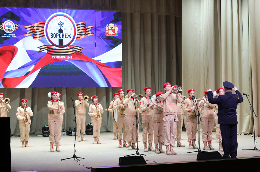 По ее словам, количество организаций, занимающихся патриотическим воспитанием, ежегодно растёт. В Воронеже насчитывается уже более 3 тысяч участников общероссийского движения «Юнармия», еще 1,5 тысяч ребят обучаются в военно-патриотических клубах, которые организованы на базе школ и учреждений дополнительного образования.Урок мужества начался с дефиле духового оркестра «Золотой эполет» под маршевую музыку и продолжился выступлением ансамбля ГУВД «Альянс».– Интерес к этому движению возрастает. Мы видим, что все больше и больше ребят активно участвуют в мероприятиях, которые проводятся этими движениями. Учащиеся постоянно расширяют свой кругозор, проявляют социальную активность совершенно в различных проектах, принимают участие в конкурсах федерального и регионального уровня, и показывают очень достойный результат, – рассказала Любовь Кулакова.