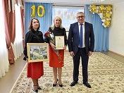 Глава Ленинского района Сергей Ситников вручил коллективу 77-го детского сада благодарственное письмо за многолетний добросовестный труд, педагогический талант, душевную щедрость и личный вклад в воспитание детей и памятный подарок от управы района.