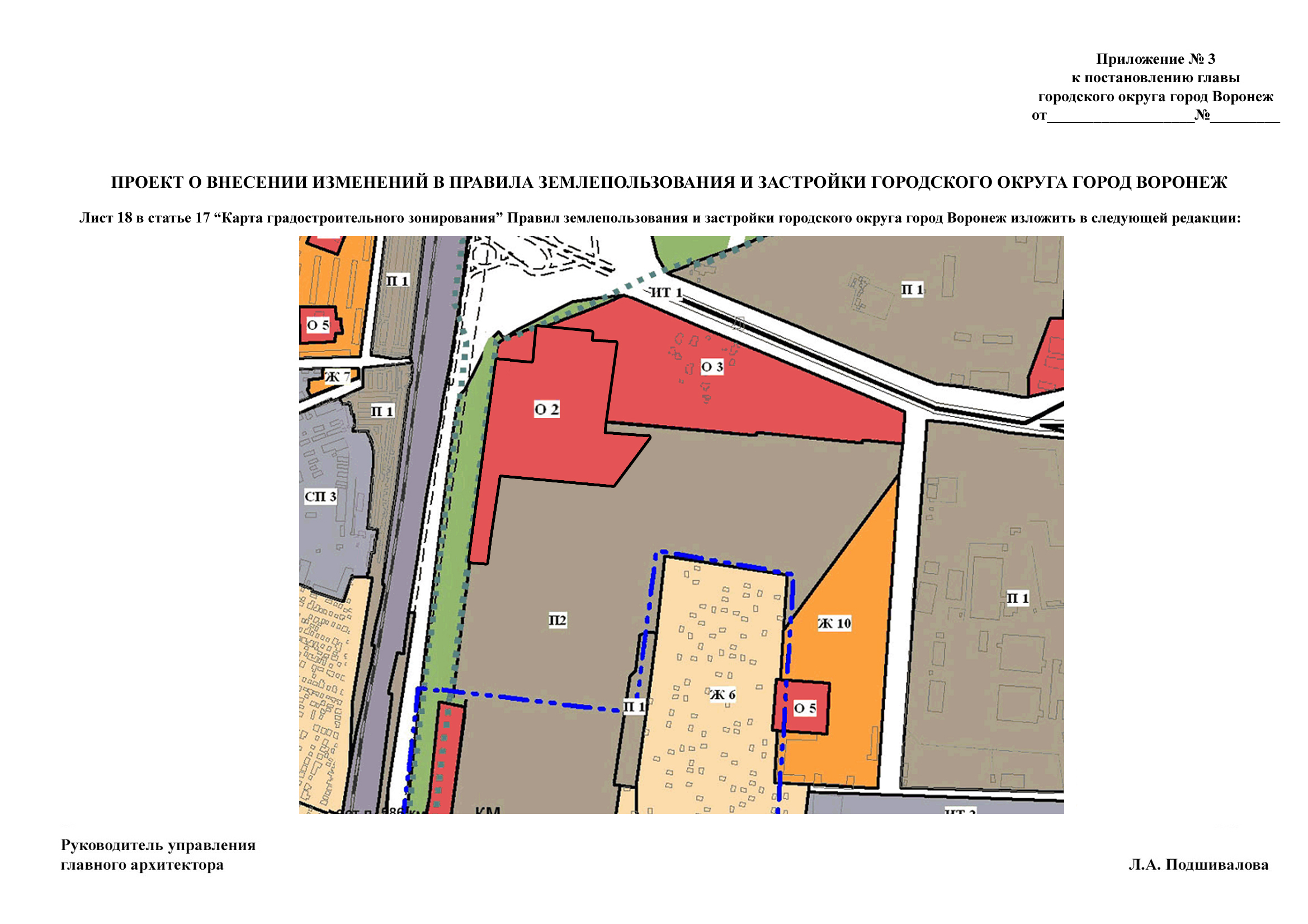 - по проекту о внесении изменений в Правила землепользования и застройки городского округа город Воронеж в части изменения границ территориальных зон П 2 «Зона развития промышленных территорий» и О 2 «Зона обслуживания местного значения» с целью включения земельного участка по ул. Остужева, 52ф (кадастровый номер 36:34:0106032:4143), прилегающей территории площадью 0,82 га, а также части прилегающей территории площадью 2,2 га в состав территориальной зоны О 2 «Зона обслуживания местного значения»; в части изменения границ территориальных зон О 3 «Зона обслуживания общегородского значения» и О 2 «Зона обслуживания местного значения» с целью включения земельного участка по ул. Остужева, 52п (кадастровый номер 36:34:0106032:4381), а также части прилегающей территории площадью 2,2 га в состав территориальной зоны О 2 «Зона обслуживания местного значения».