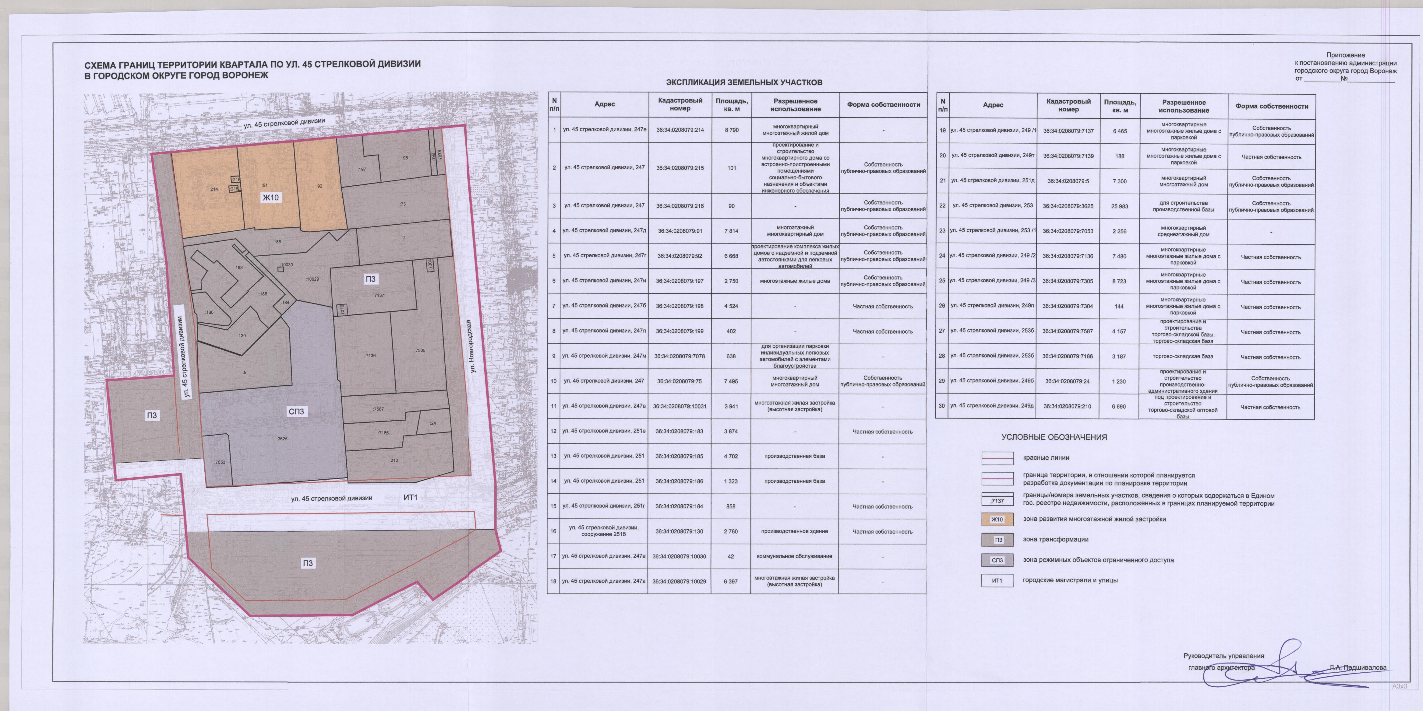 в проект планировки территории по ул. 45 стрелковой дивизии в городском округе город Воронеж