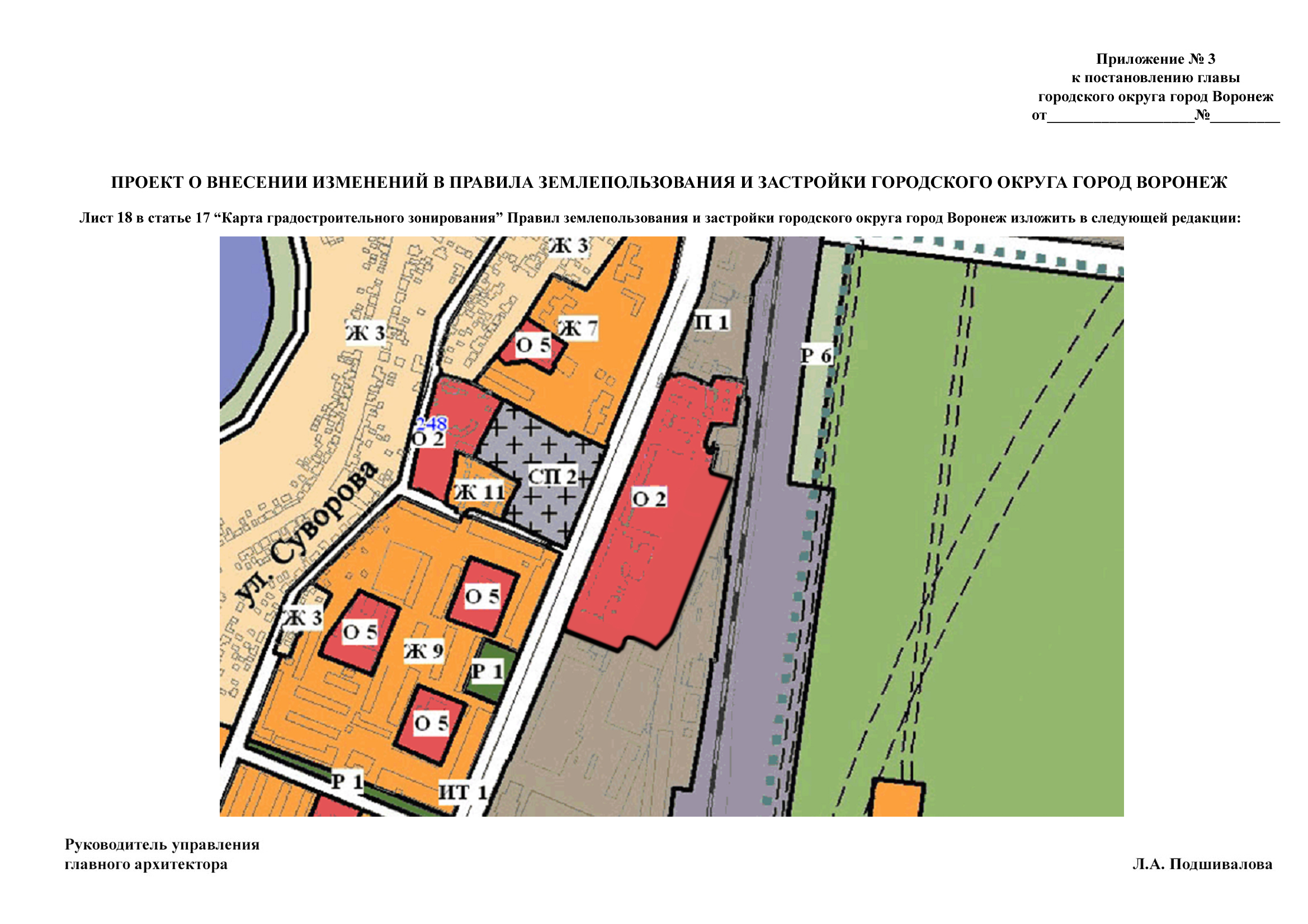 - - по проекту о внесении изменений в Правила землепользования и застройки городского округа город Воронеж в части изменения границ территориальных зон П 3 «Зона трансформации» и О 2 «Зона обслуживания местного значения» с целью включения земельных участков по пр-кту Ленинский, 174т (кадастровый номер 36:34:0105036:82), пр-кту Ленинский, 174/20 (кадастровый номер 36:34:0105036:118), пр-кту Ленинский, 174у (кадастровый номер 36:34:0105036:81), пр-кту Ленинский, 174/П (кадастровый номер 36:34:0105036:1505), пр-кту Ленинский, 174р (участок № 2) (кадастровый номер 36:34:0105036:90) в состав территориальной зоны О 2 «Зона обслуживания местного значения».