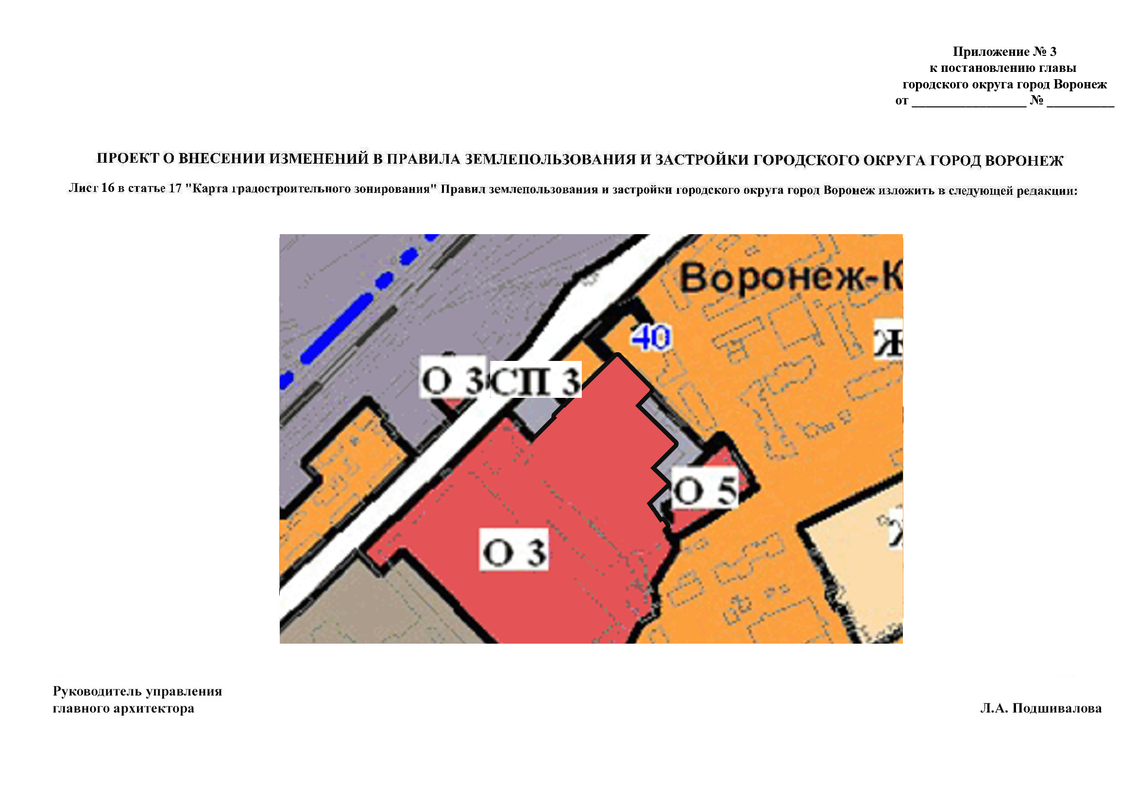 - - по проекту о внесении изменений в Правила землепользования и застройки городского округа город Воронеж в части изменения границ территориальных зон СП 3 «Зона режимных объектов ограниченного доступа» и О 3 «Зона обслуживания общегородского значения» с целью включения земельного участка по ул. Донбасская, 17 (кадастровый номер 36:34:0401007:21) в состав территориальной зоны О 3 «Зона обслуживания общегородского значения».