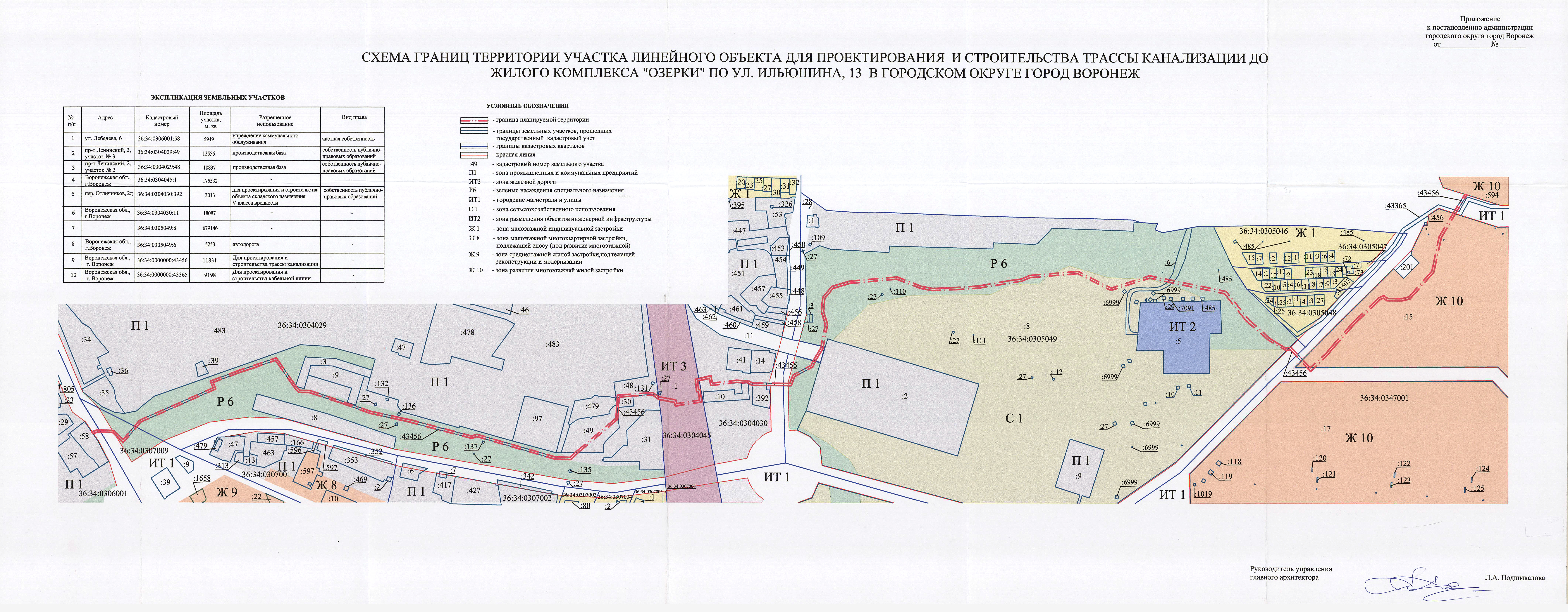 2.1. Подготовить в соответствии с утвержденным заданием, указанным в пункте 1 настоящего постановления, документацию по планировке территории участка линейного объекта для проектирования и строительства трассы канализации до жилого комплекса «Озерки» по ул. Ильюшина, 13 в городском округе город Воронеж согласно прилагаемой схеме.