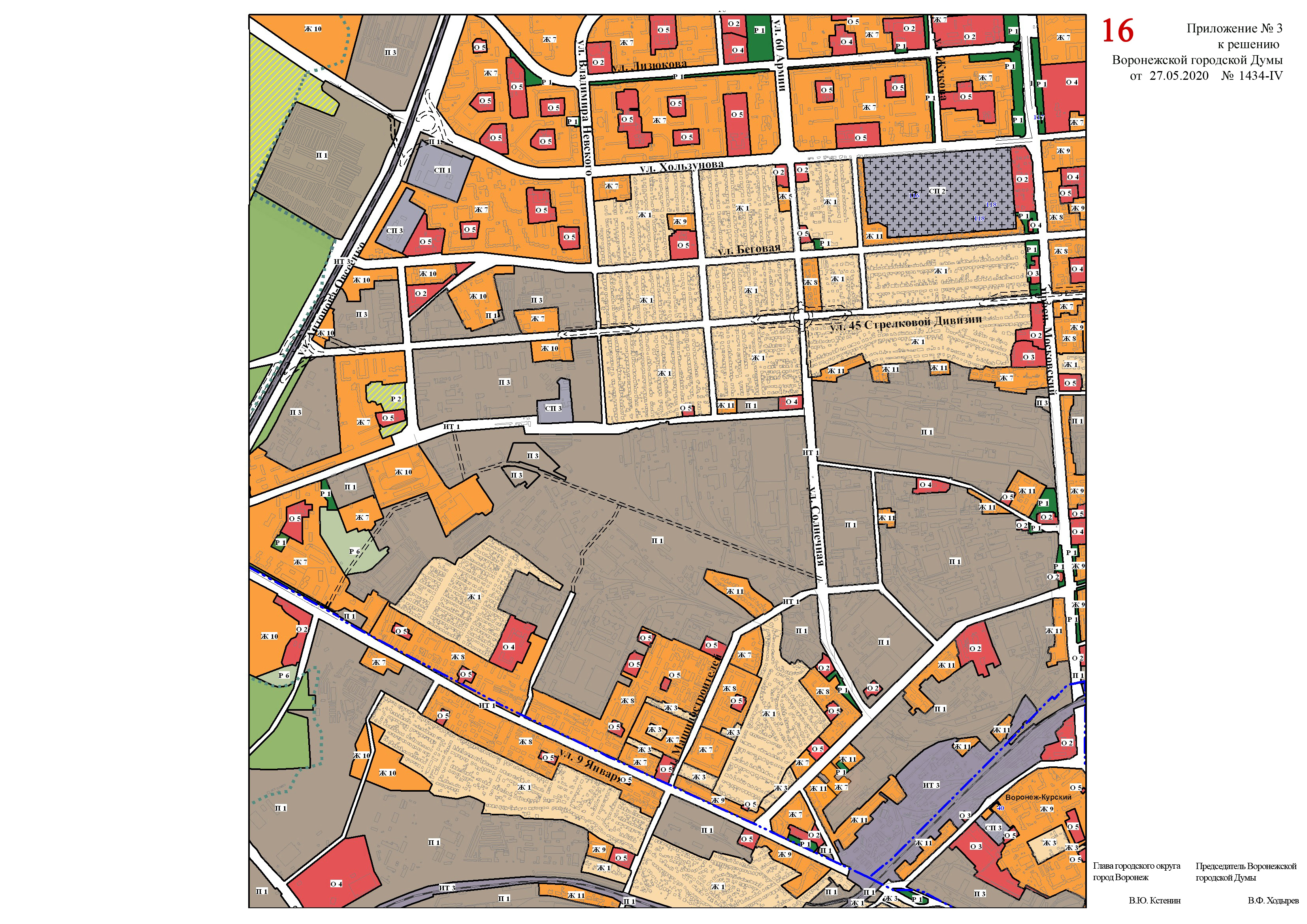2. Внести изменение в приложение к решению Воронежской городской Думы от 25.12.2009 № 384-II «Об утверждении Правил землепользования и застройки городского округа город Воронеж», изложив в статье 17 «Карта градостроительного зонирования» лист 16 в новой редакции согласно приложению № 3.