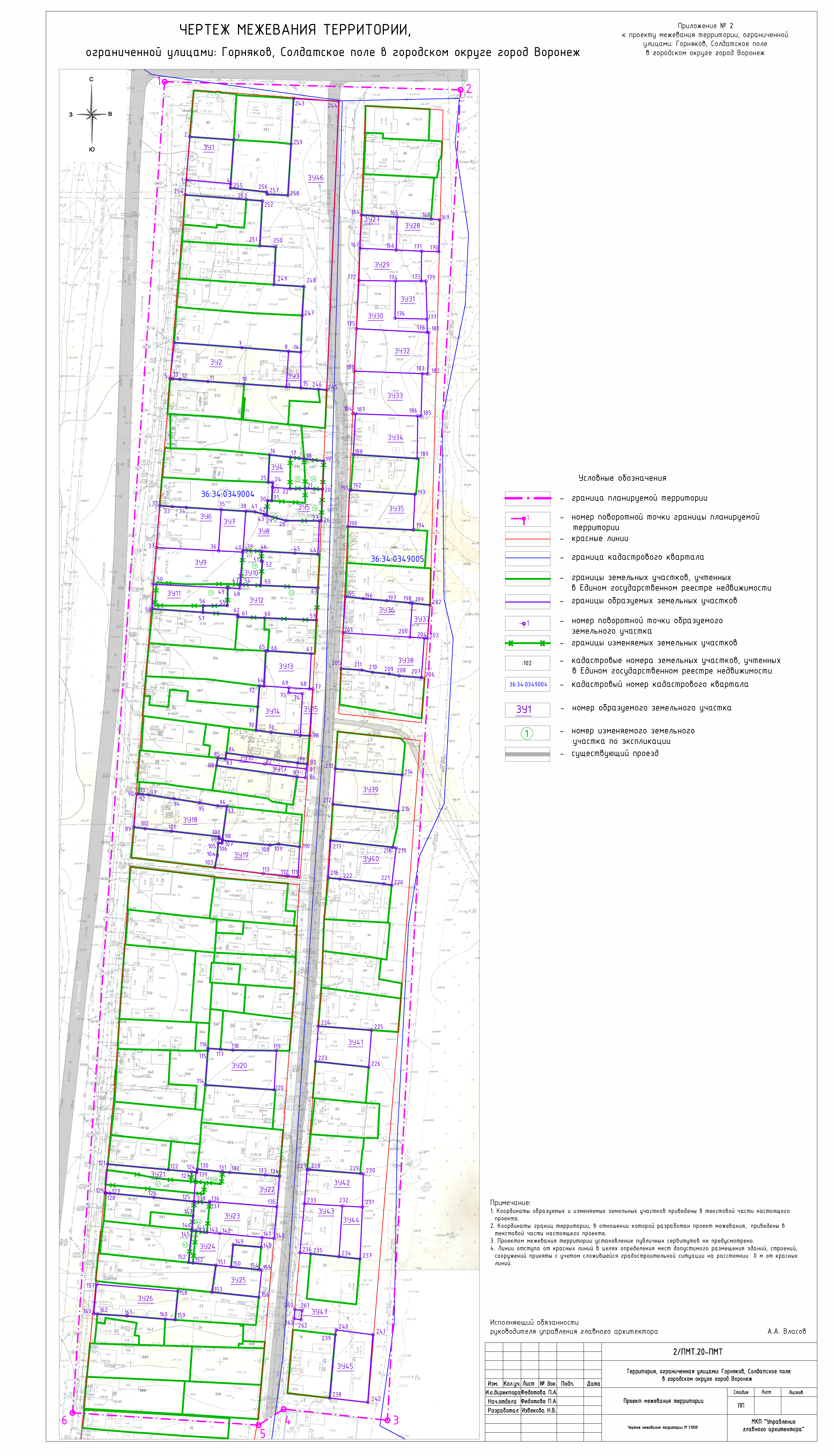 Проект межевания территории, ограниченной улицами: Горняков, Солдатское поле в городском округе город Воронеж