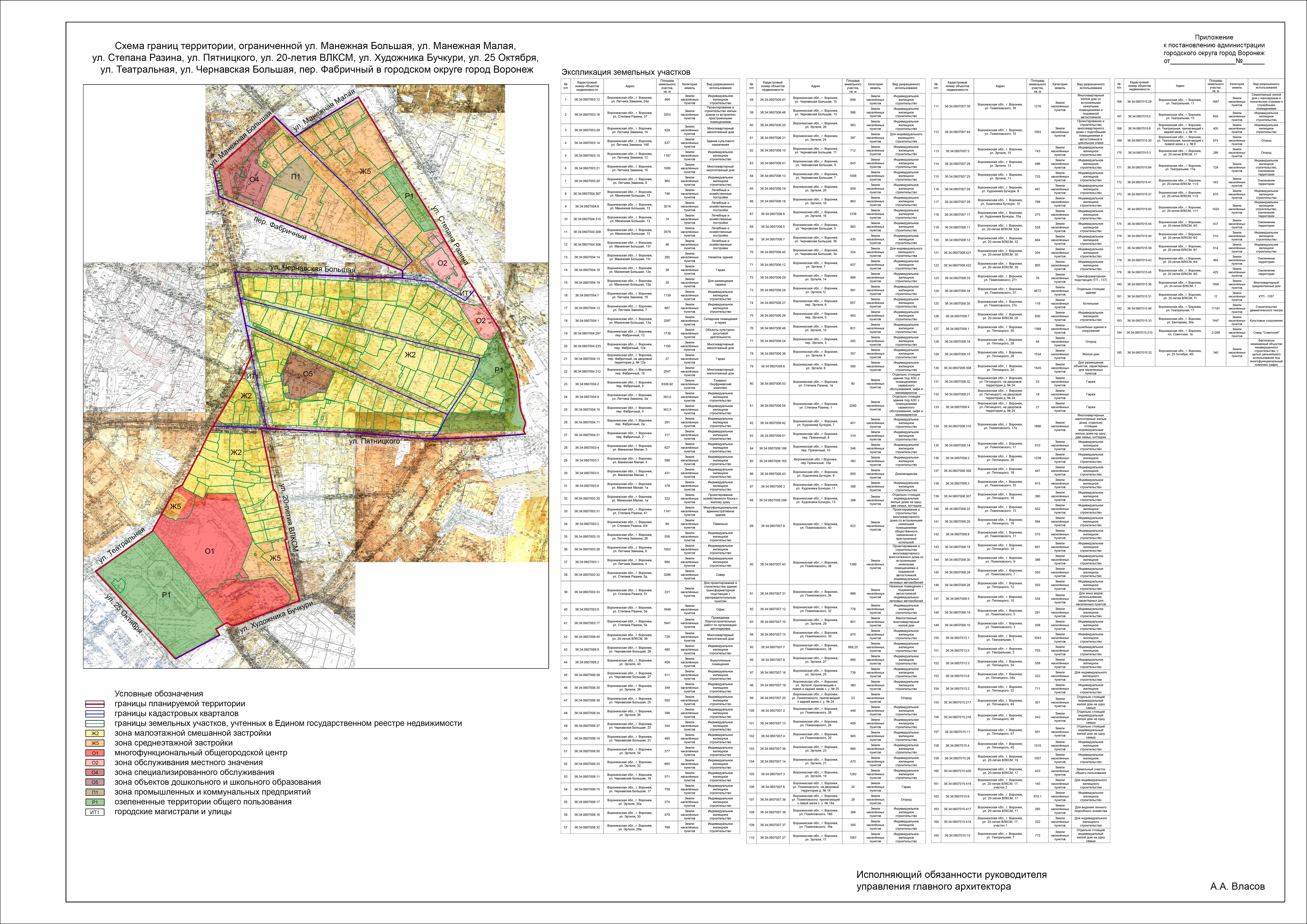 Задание на подготовку документации по планировке территории, ограниченной ул. Манежная Большая, ул. Манежная Малая, ул. Степана Разина, ул. Пятницкого, ул. 20-летия ВЛКСМ, ул. Художника Бучкури, ул. 25 Октября, ул. Театральная, ул. Чернавская Большая, пер. Фабричный в городском округе город Воронеж