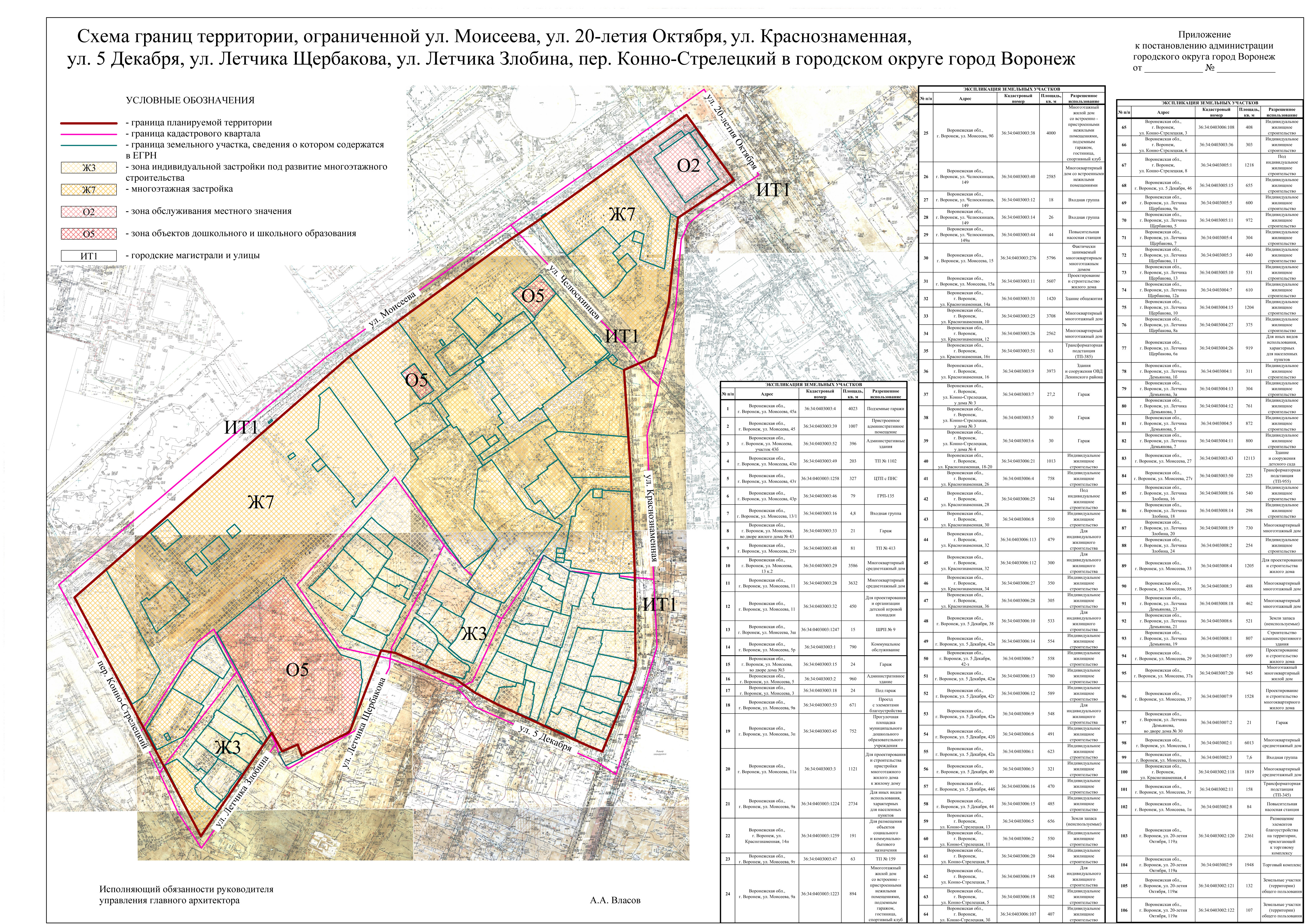 Задание на подготовку документации по планировке территории, ограниченной ул. Моисеева, ул. 20-летия Октября, ул. Краснознаменная, ул. 5 Декабря, ул. Летчика Щербакова, ул. Летчика Злобина, пер. Конно-Стрелецкий в городском округе город Воронеж