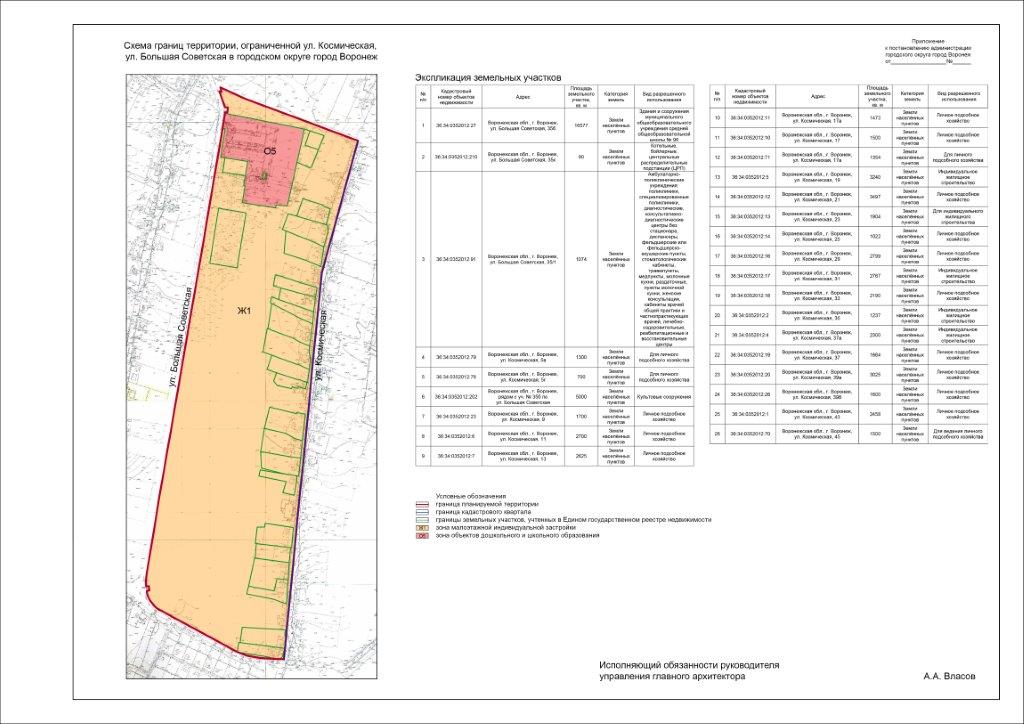 Задание на подготовку документации по планировке территории, ограниченной ул. Космическая, ул. Большая советская в городском округе город Воронеж