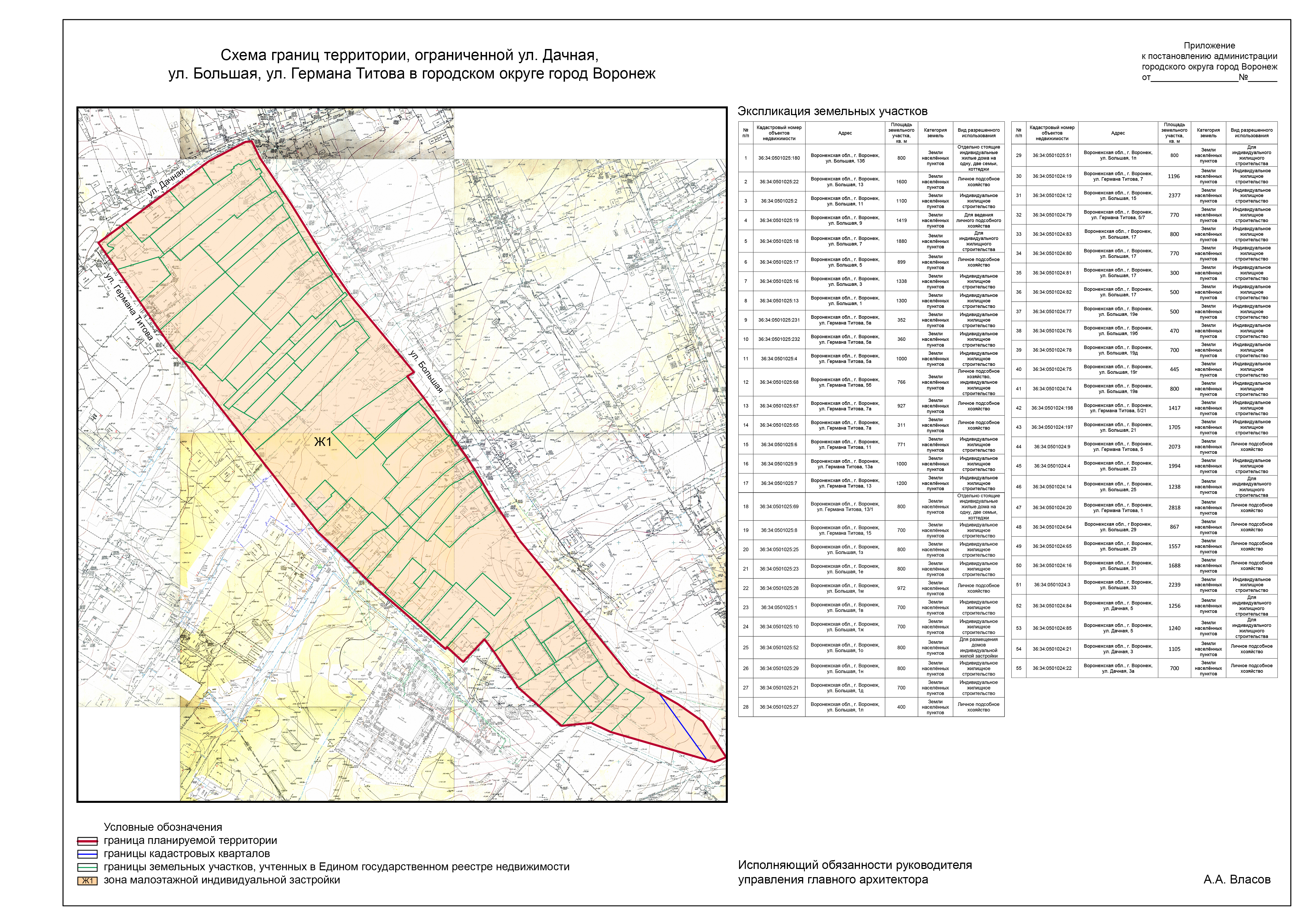 Задание на подготовку документации по планировке территории, ограниченной ул. Дачная, ул. Большая, ул. Германа Титова в городском округе город Воронеж