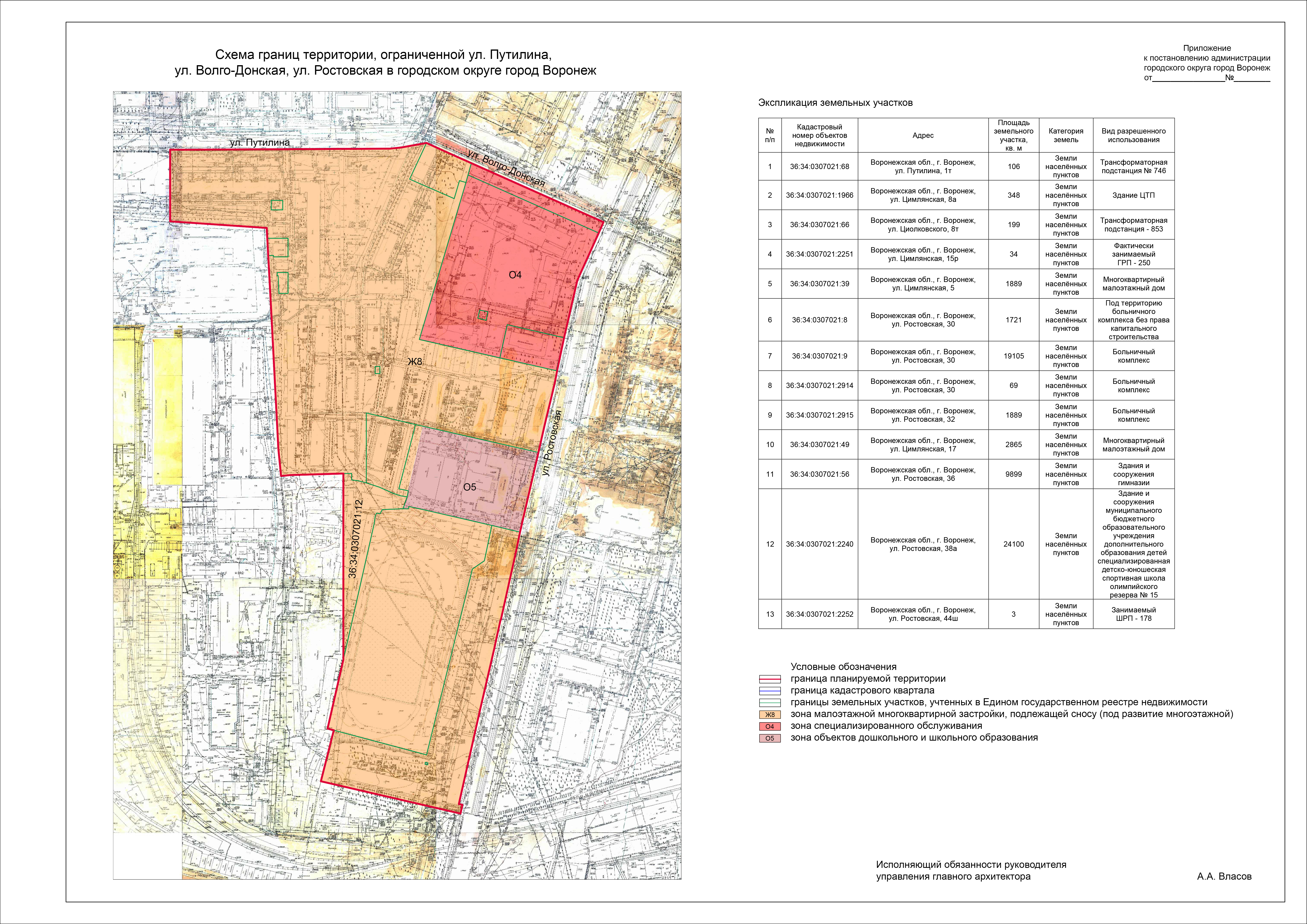 Задание на подготовку документации по планировке территории, ограниченной ул. Путилина, ул. Волго-Донская, ул. Ростовская в городском округе город Воронеж
