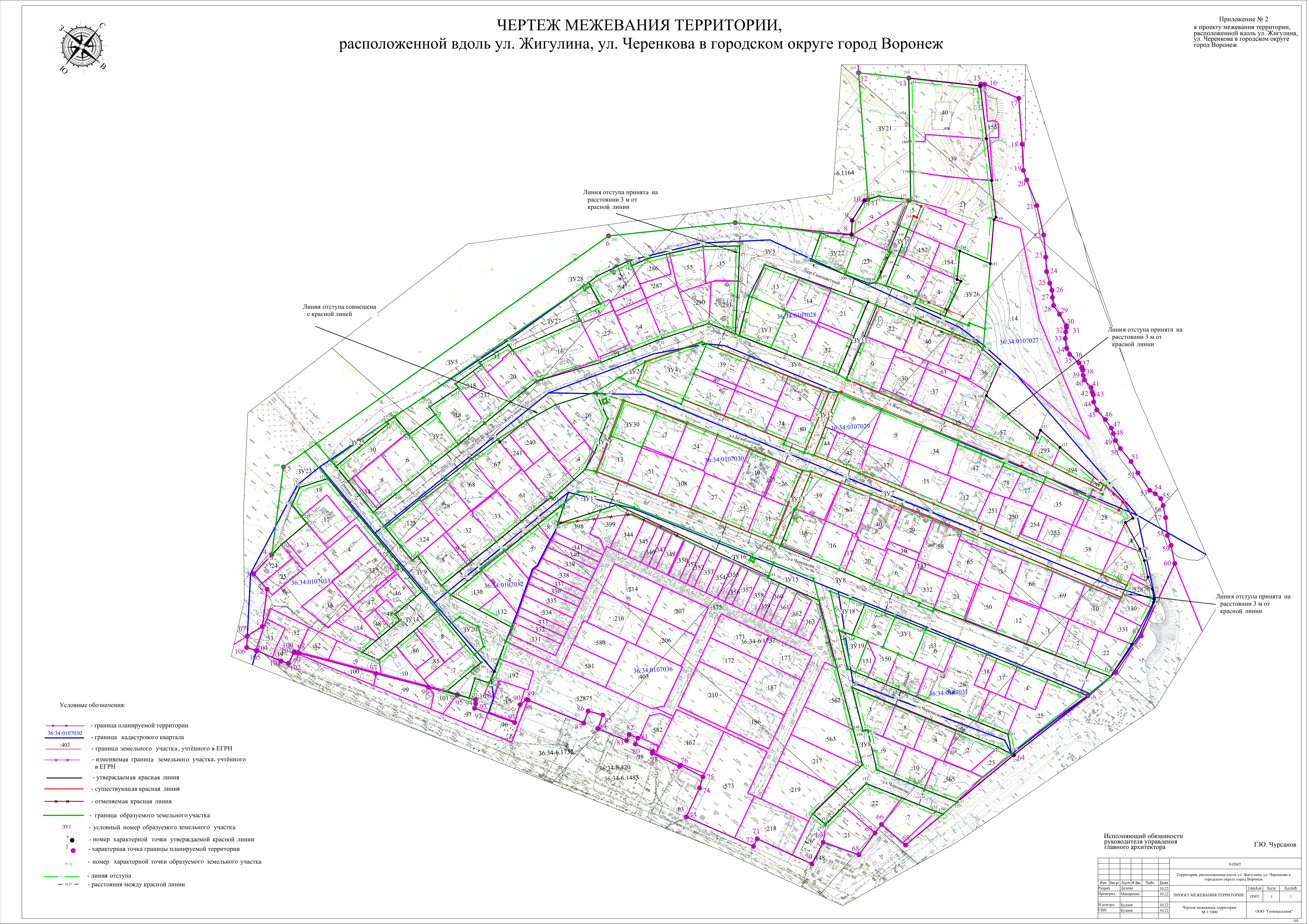 Чертеж межевания территории, расположенной вдоль ул. Жигулина, ул. Черенкова в городском округе город Воронеж