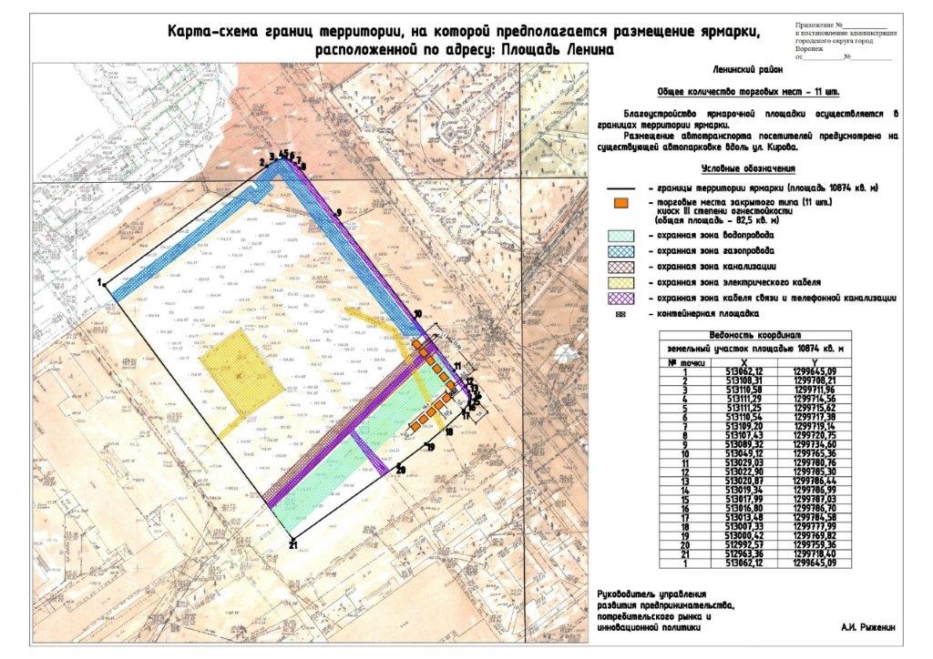 6. Карту-схему границ территории, на которой предполагается размещение ярмарки, расположенной по адресу: Площадь Ленина, Приложения № 2 изложить в новой редакции согласно приложению № 3 к настоящему постановлению.