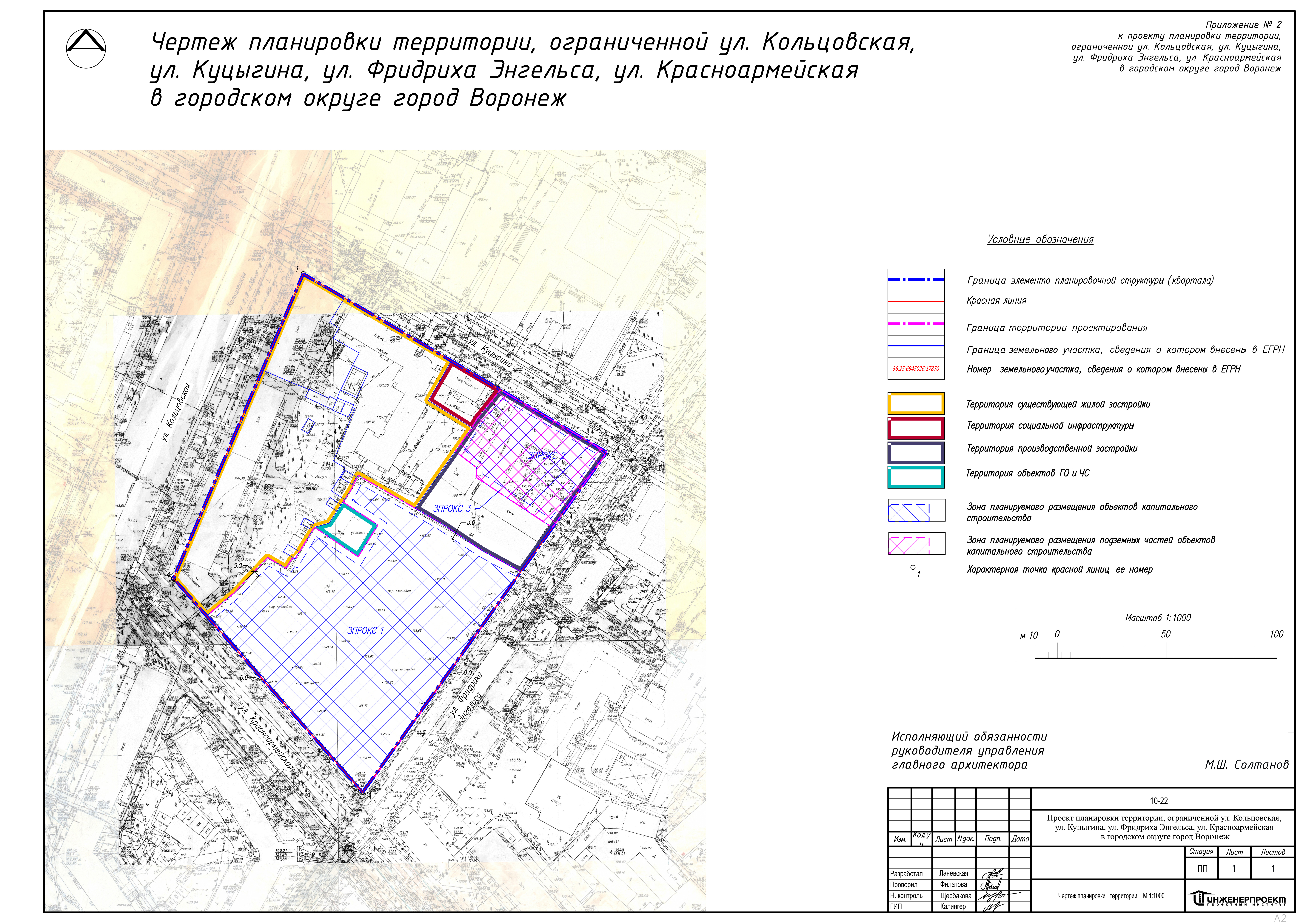 Проект планировки территории, ограниченной ул. кольцовская, ул. Куцыгина, ул. Фридриха Энгельса, ул. Красноармейская в городском округе город Воронеж