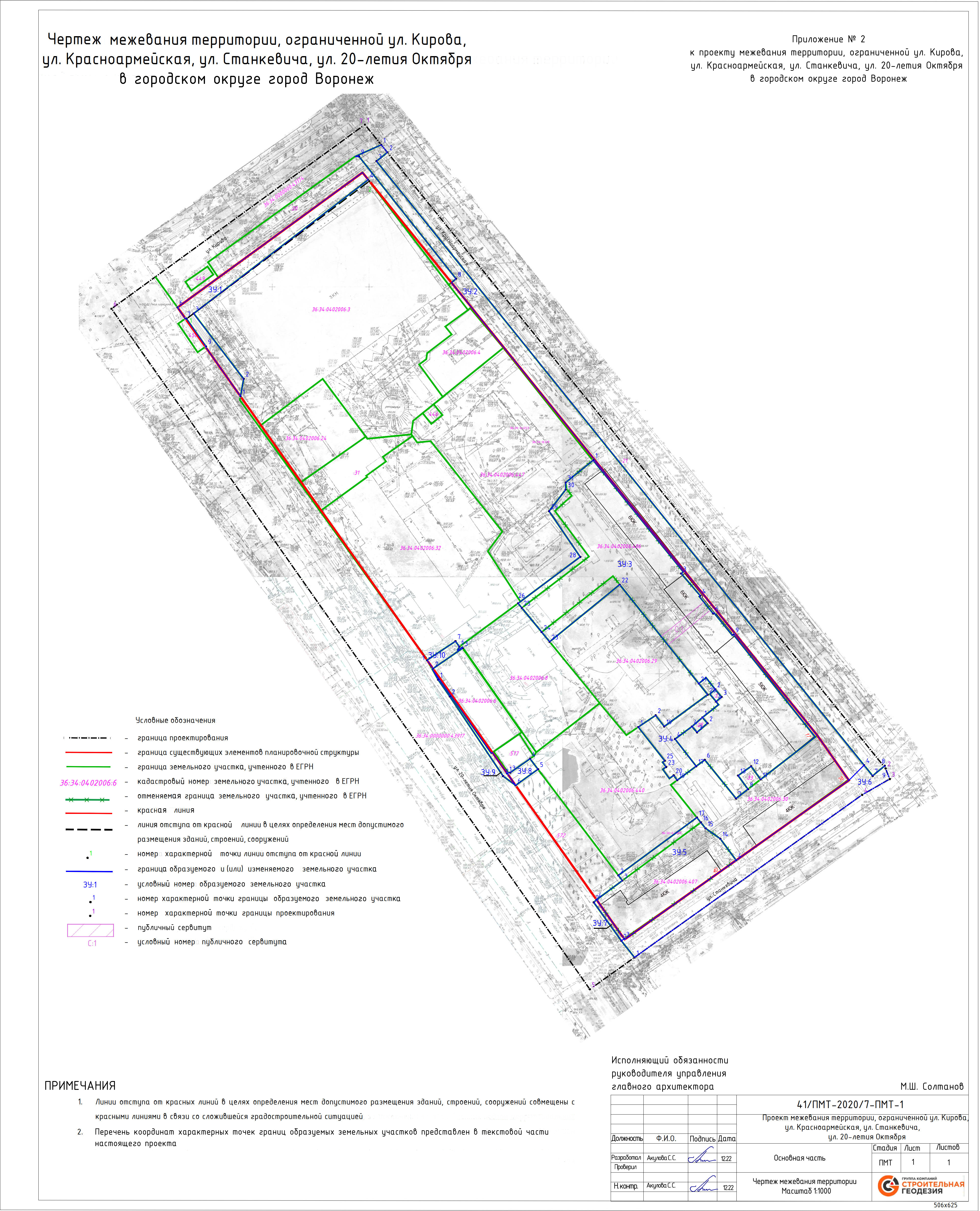 Проект межевания территории, ограниченной ул. Кирова, ул. Красноармейская, ул. Станкевича, ул. 20-летия Октября в городском округе город Воронеж