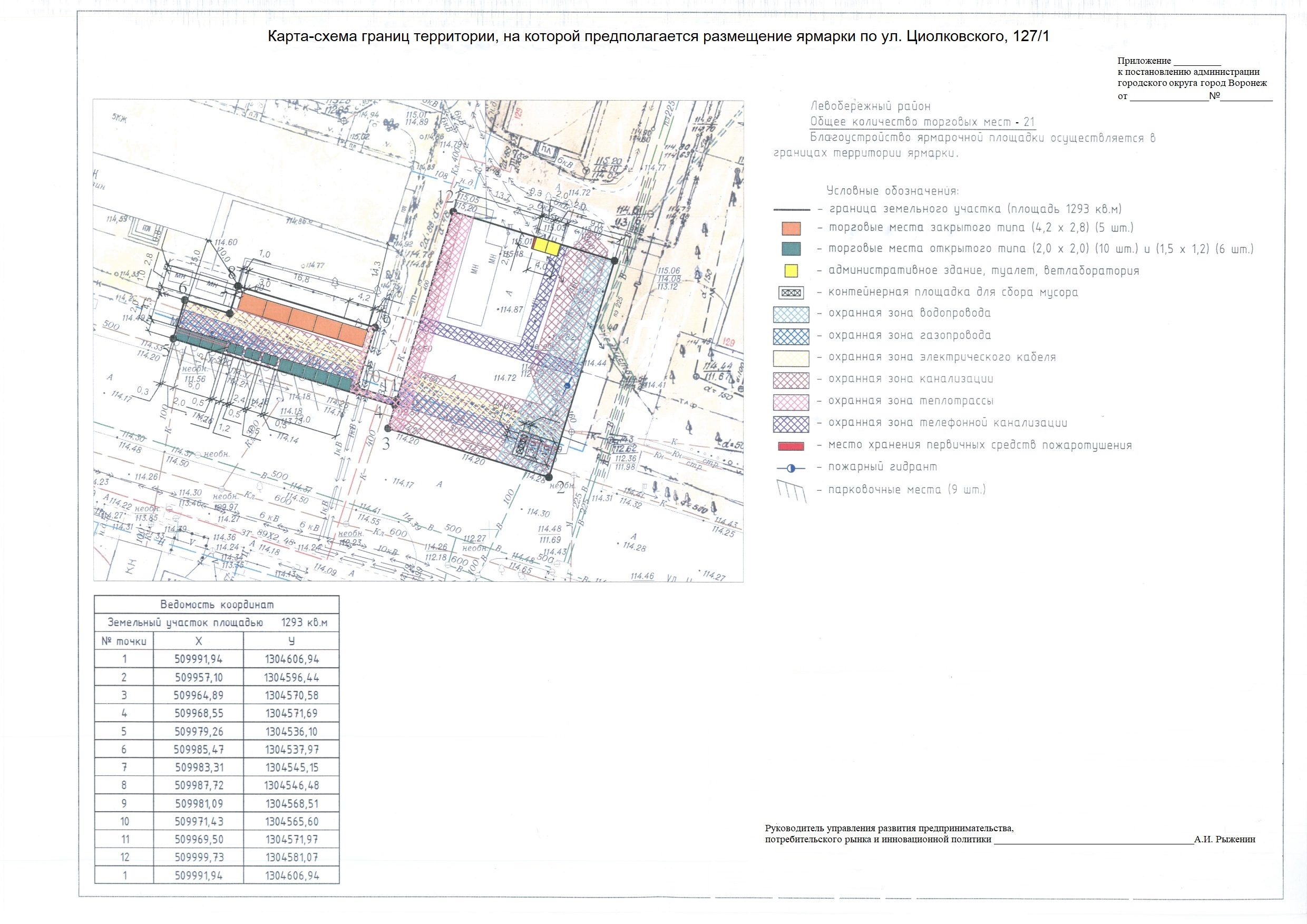 Карта-схема границ территории, на которой предполагается размещение ярмарки по ул. Циолковского, 127/1