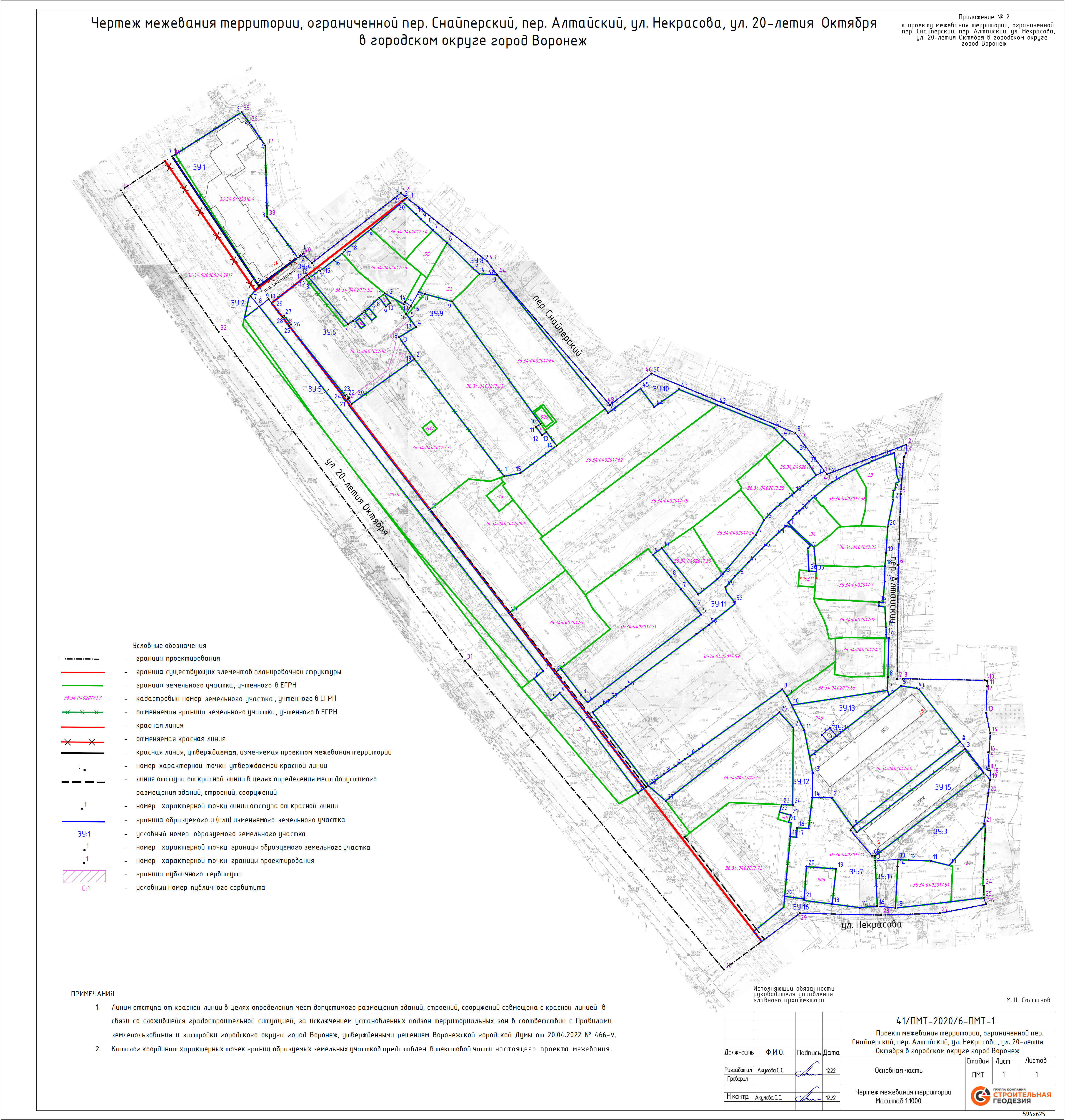 Чертеж межевания территории, ограниченной пер. Снайперский, пер. Алтайский, ул. Некрасова, ул. 20-летия Октября в городском округе город Воронеж