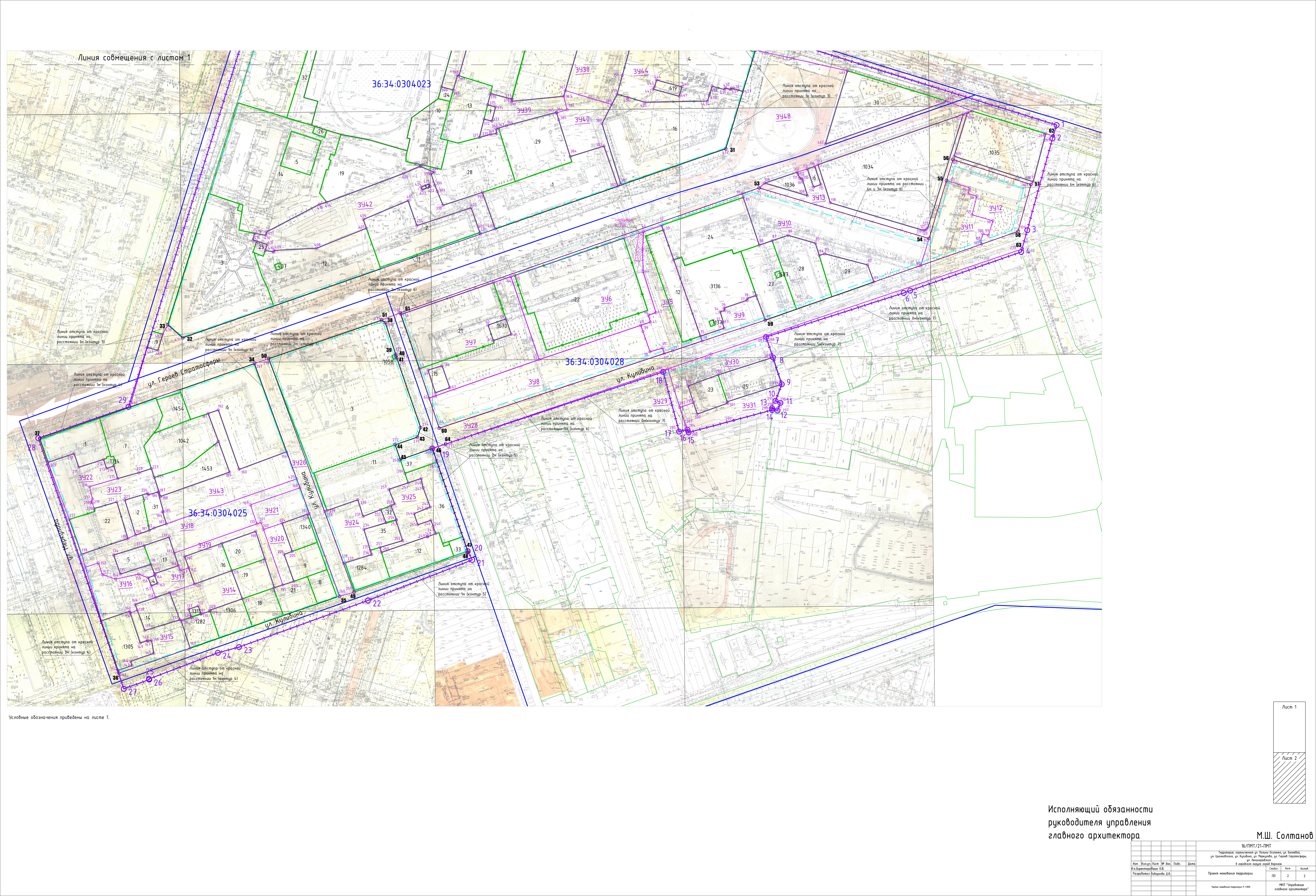 Чертеж межевания территории, ограниченной ул. Полины Осипенко, ул. Беляевой, ул. Циолковского, ул. Кулибина, ул. Меркулова, ул. Героев Стратосферы, ул. Ленинградская в городском округе город Воронеж (лист 1)