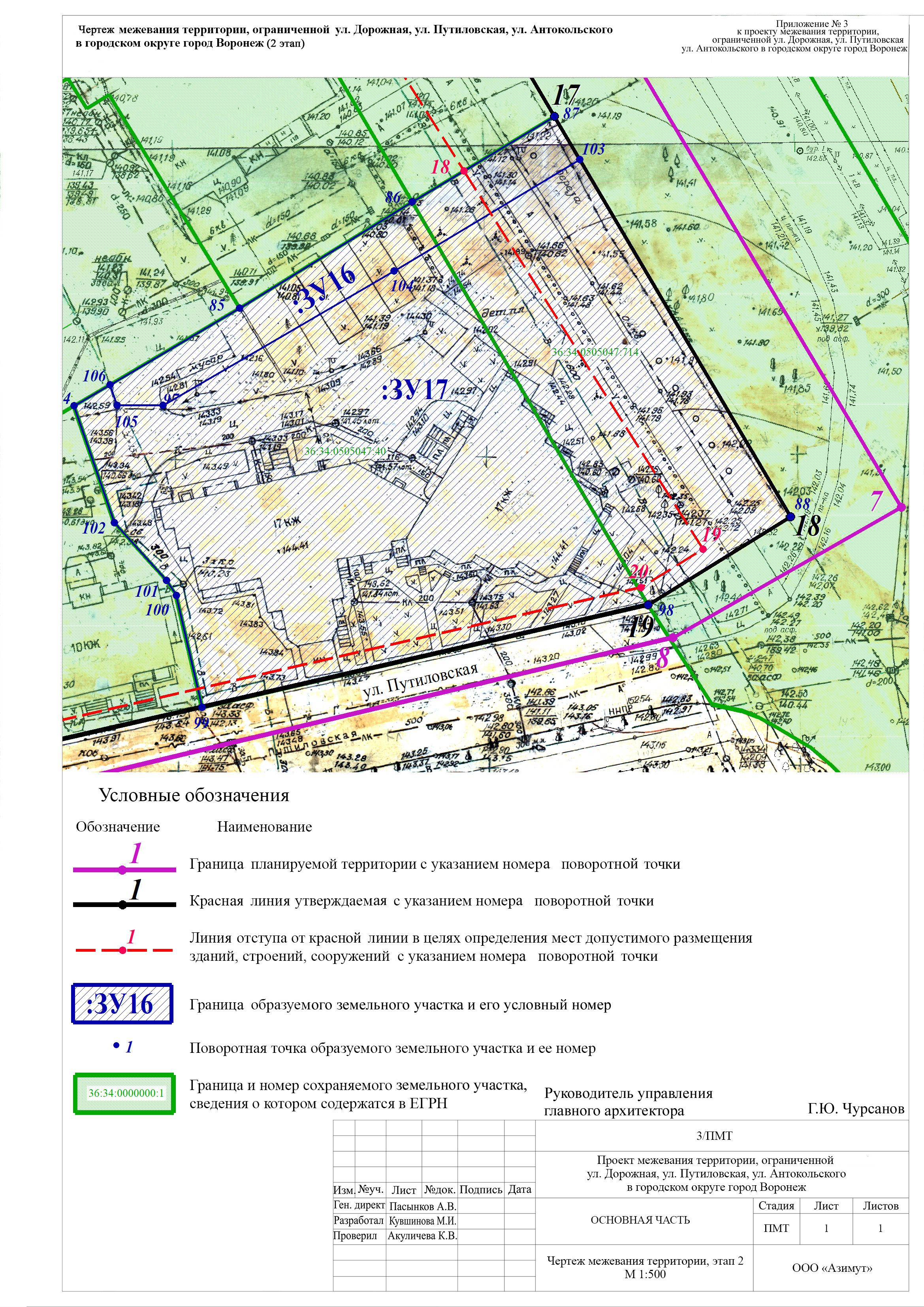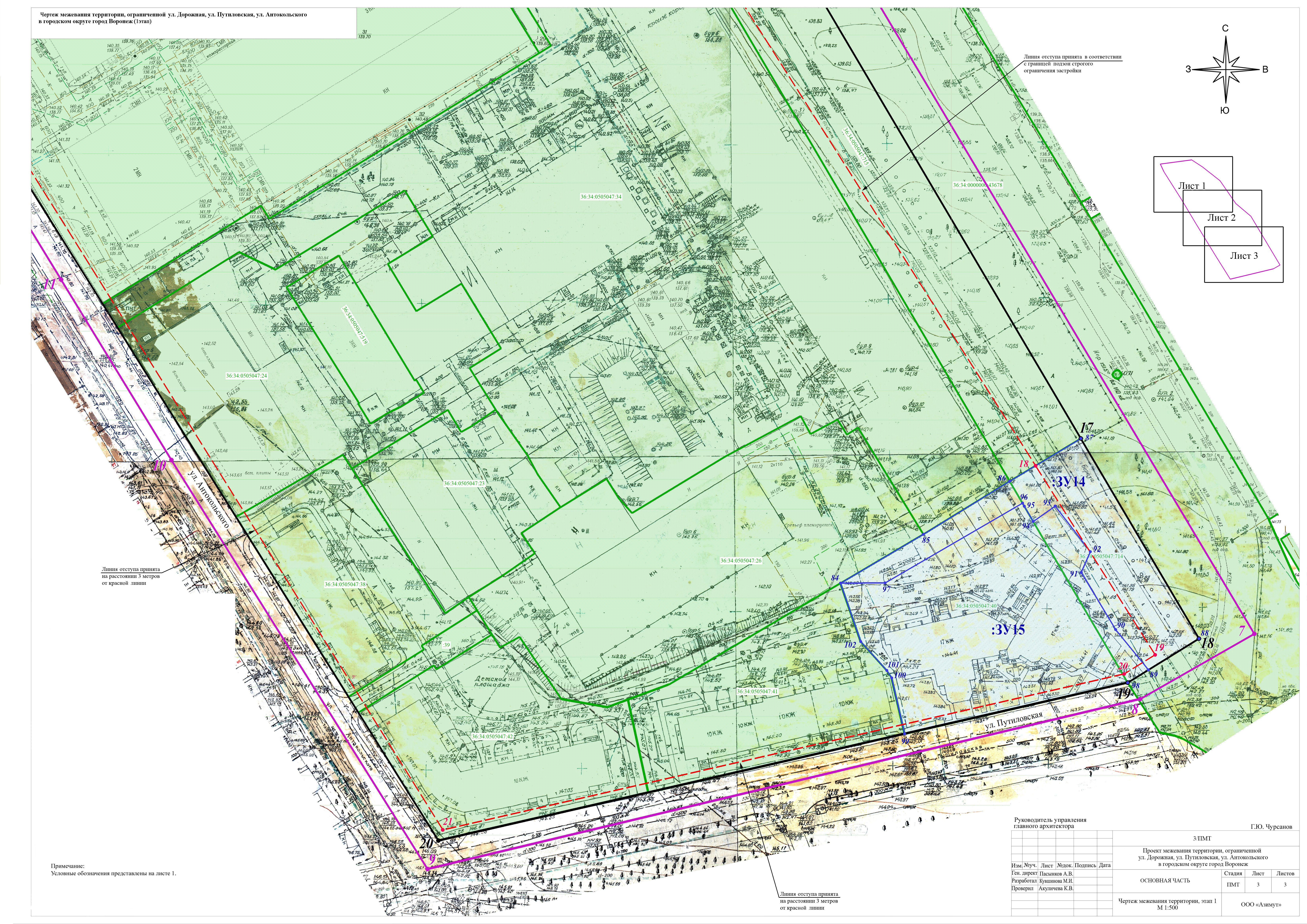 Проект межевания территории, ограниченной ул. Дорожная, ул. Путиловская, ул. Антокольского в городском округе город Воронеж