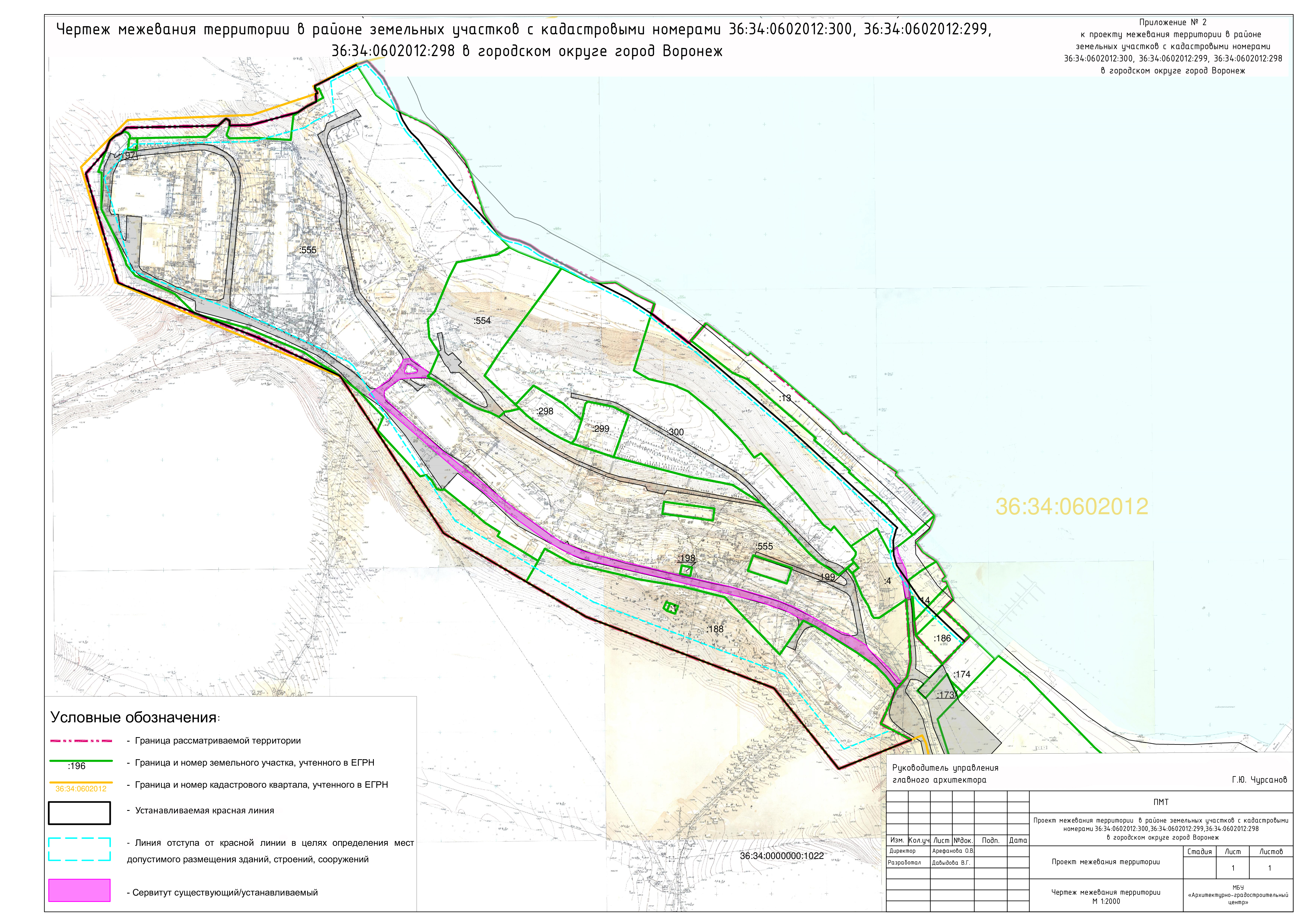 Проект межевания территории в районе земельных участков с кадастровыми номерами 36:34:0602012:300, 36:34:0602012:299, 36:34:0602012:298 в городском округе город Воронеж