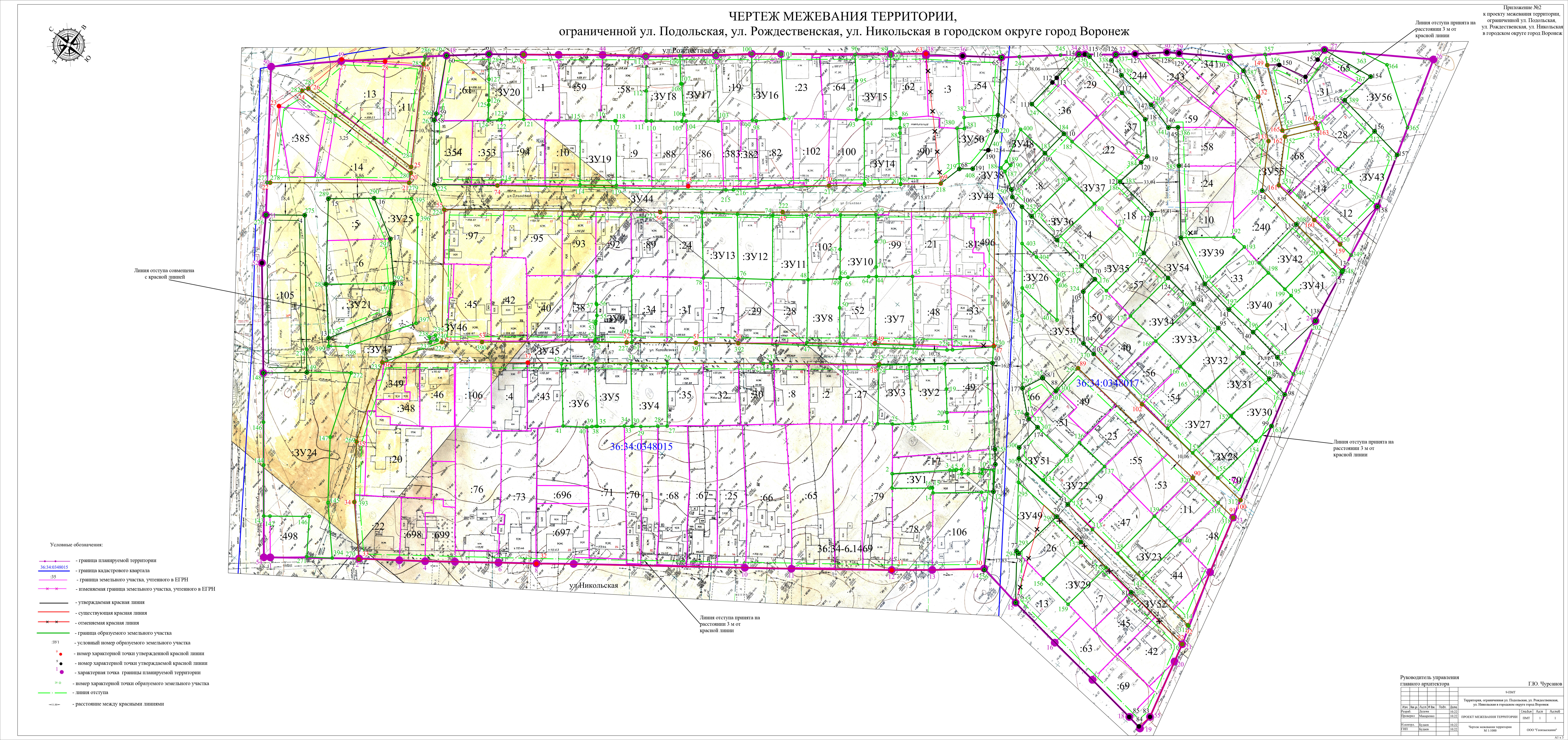 Чертеж межевания территории, ограниченной ул. Подольская, ул. Рождественская, ул. Никольская в городском округе город Воронеж