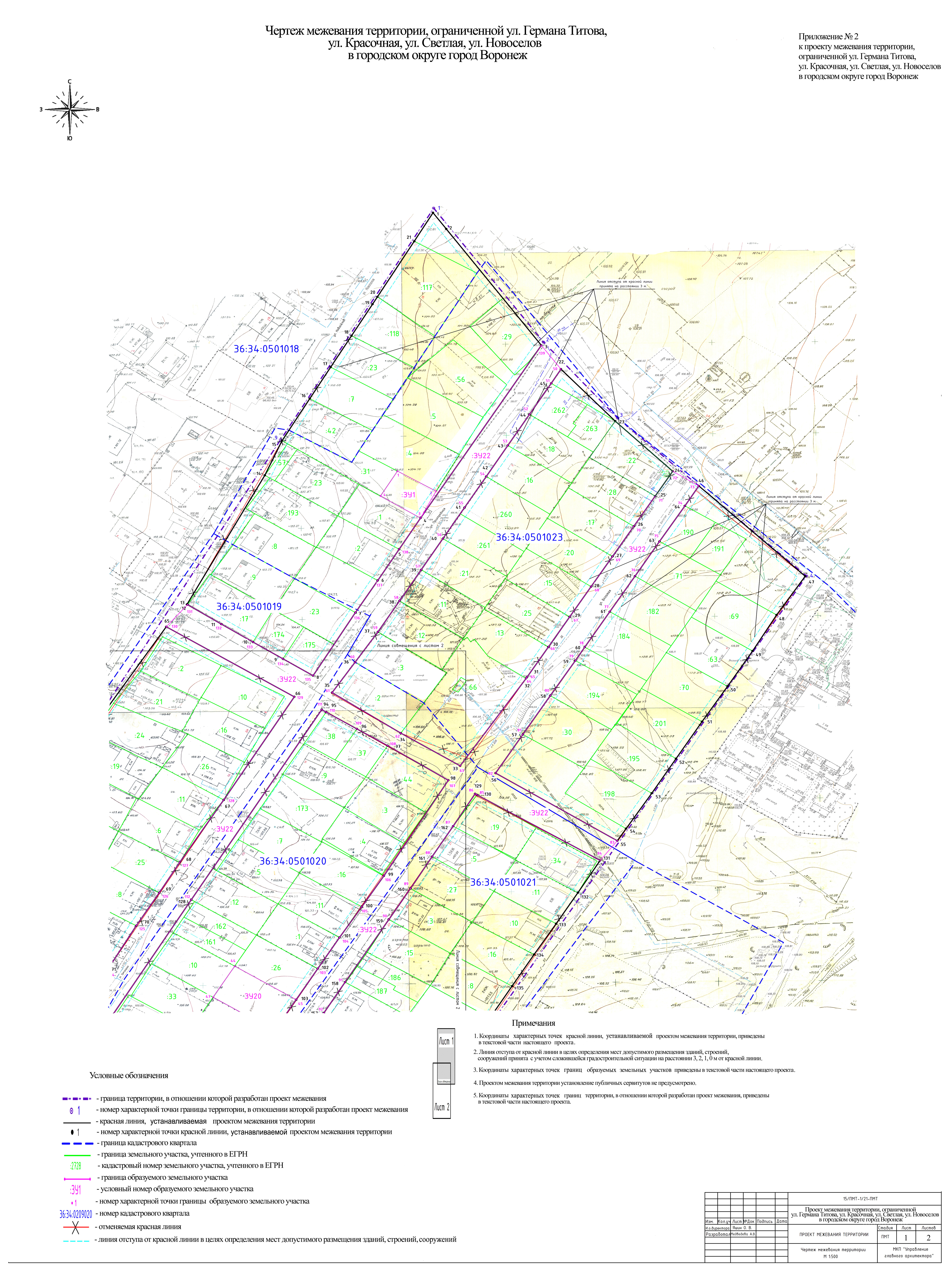 Проект межевания территории, ограниченной ул. Германа Титова, ул. Красочная, ул. Светлая, ул. Новоселов в городском округе город Воронеж