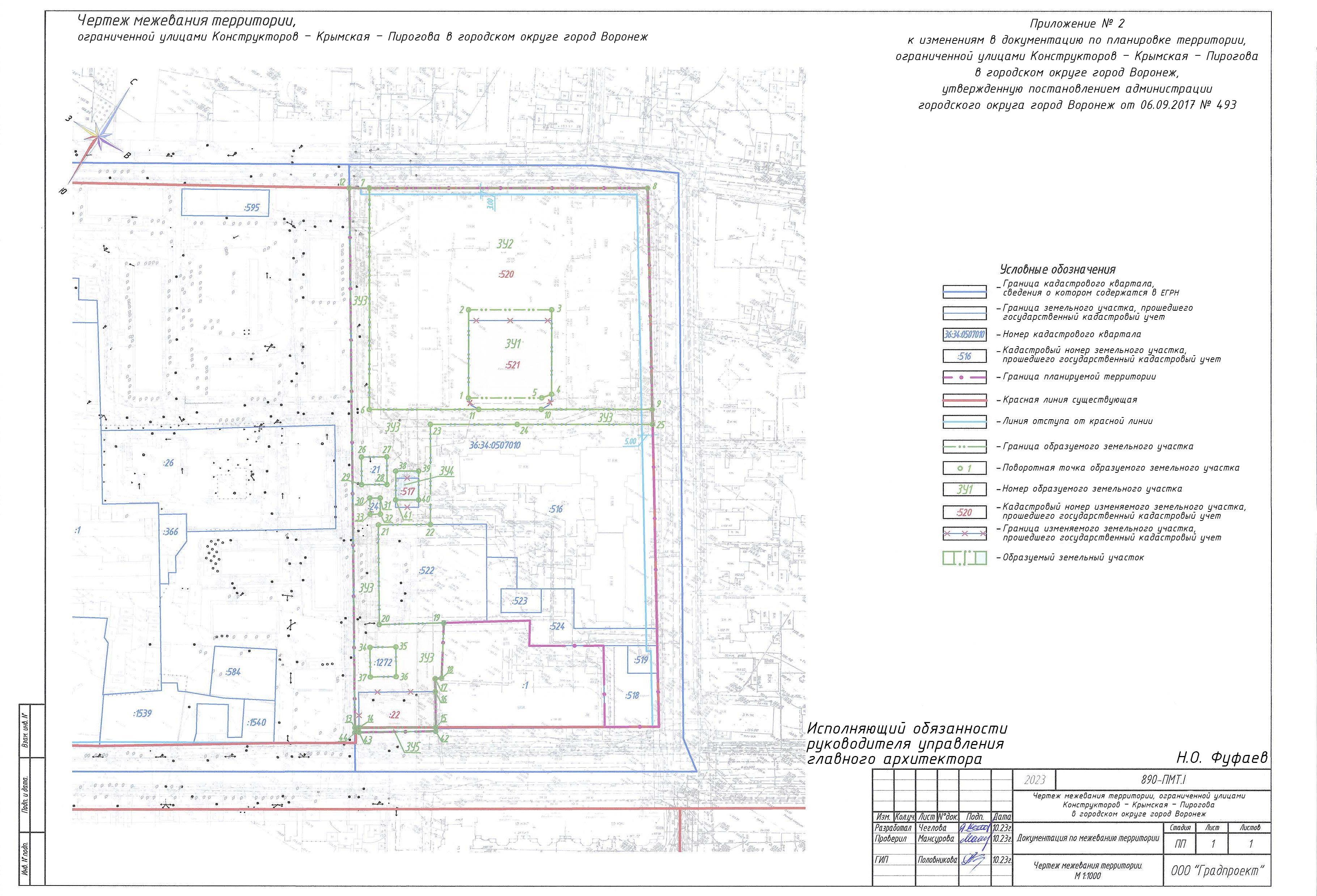 Изменения в документацию по планировке территории, ограниченной улицами Конструкторов – Крымская – Пирогова в городском округе город Воронеж, утвержденную постановлением администрации городского округа город Воронеж от 06.09.2017 № 493