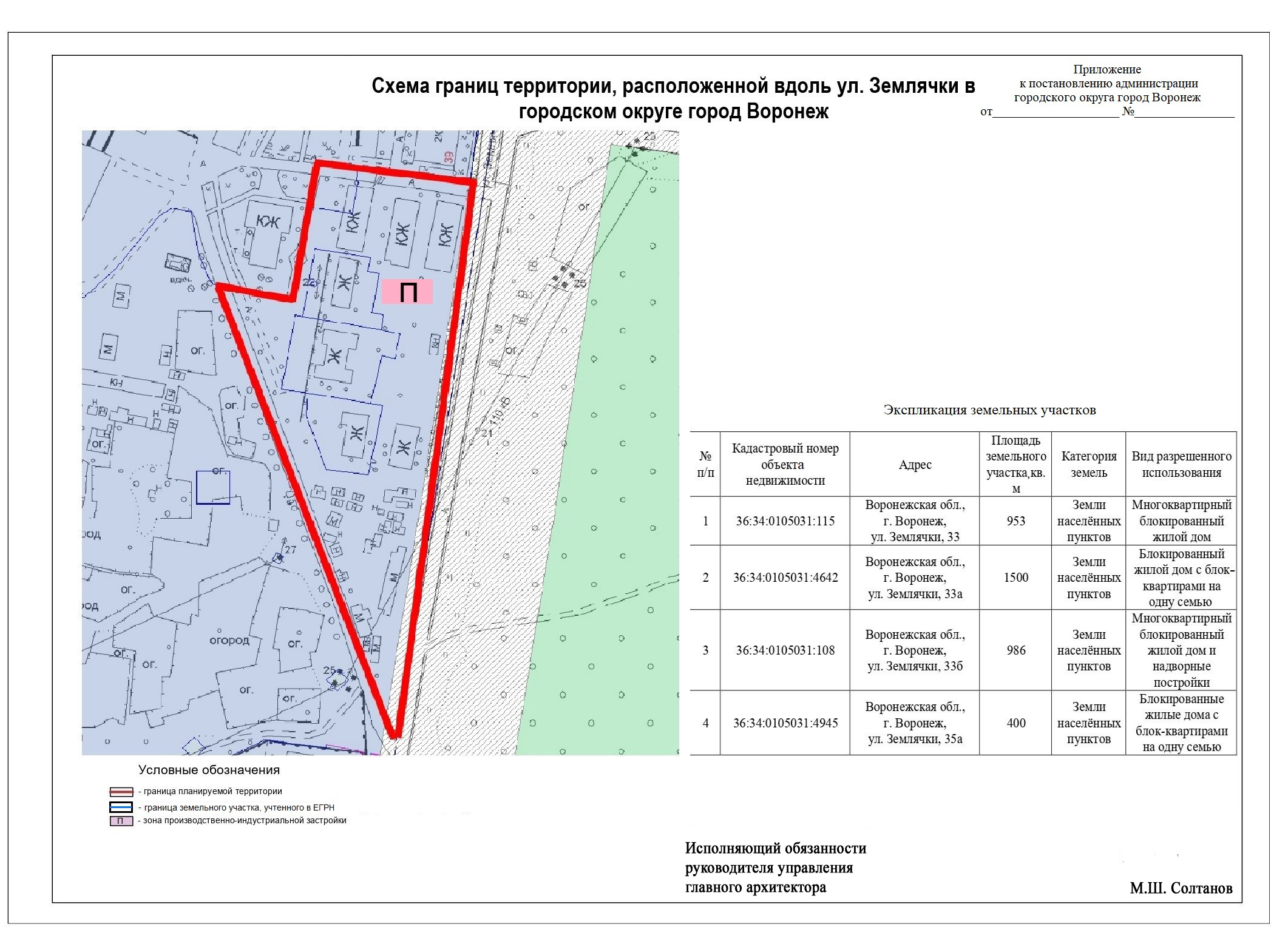 Задание на подготовку документации по планировке территории, расположенной вдоль ул. Землячки в городском округе город Воронеж
