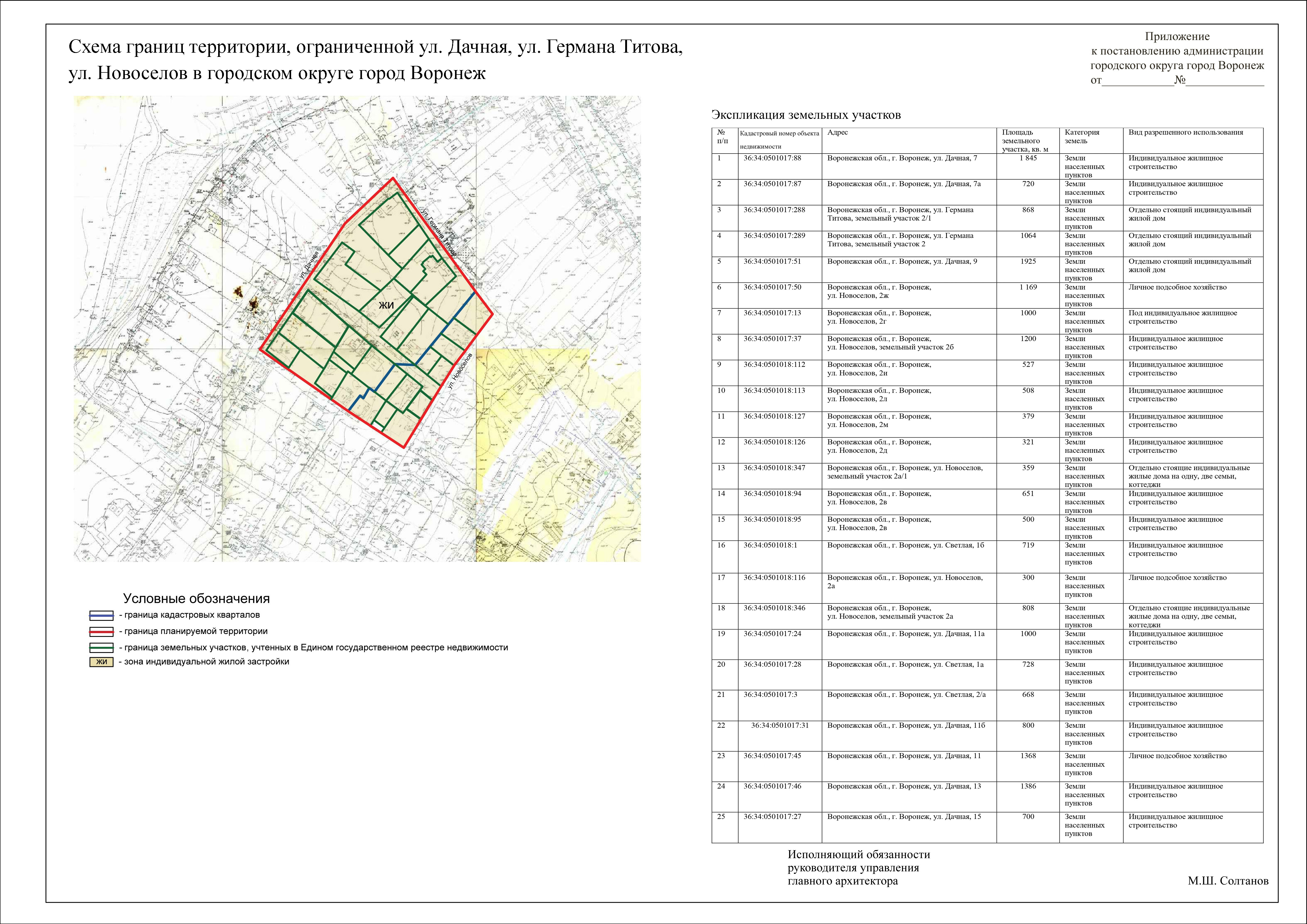 Задание на подготовку документации по планировке территории, ограниченной ул. Дачная, ул. Германа Титова, ул. Новоселов в городском округе город Воронеж