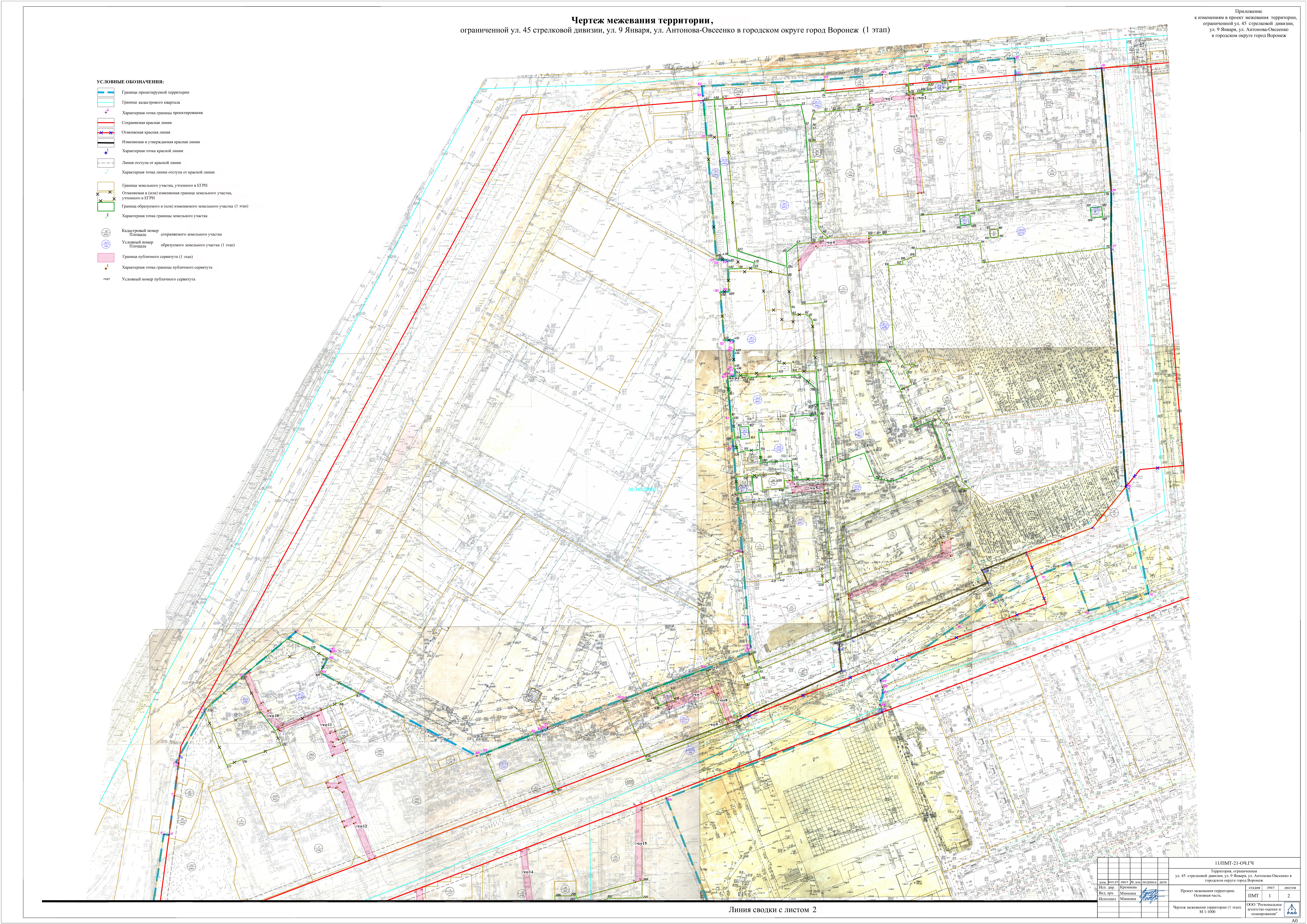 Изменения в проект межевания территории, ограниченной ул. 45 стрелковой дивизии, ул. 9 Января, ул. Антонова-Овсеенко в городском округе город Воронеж