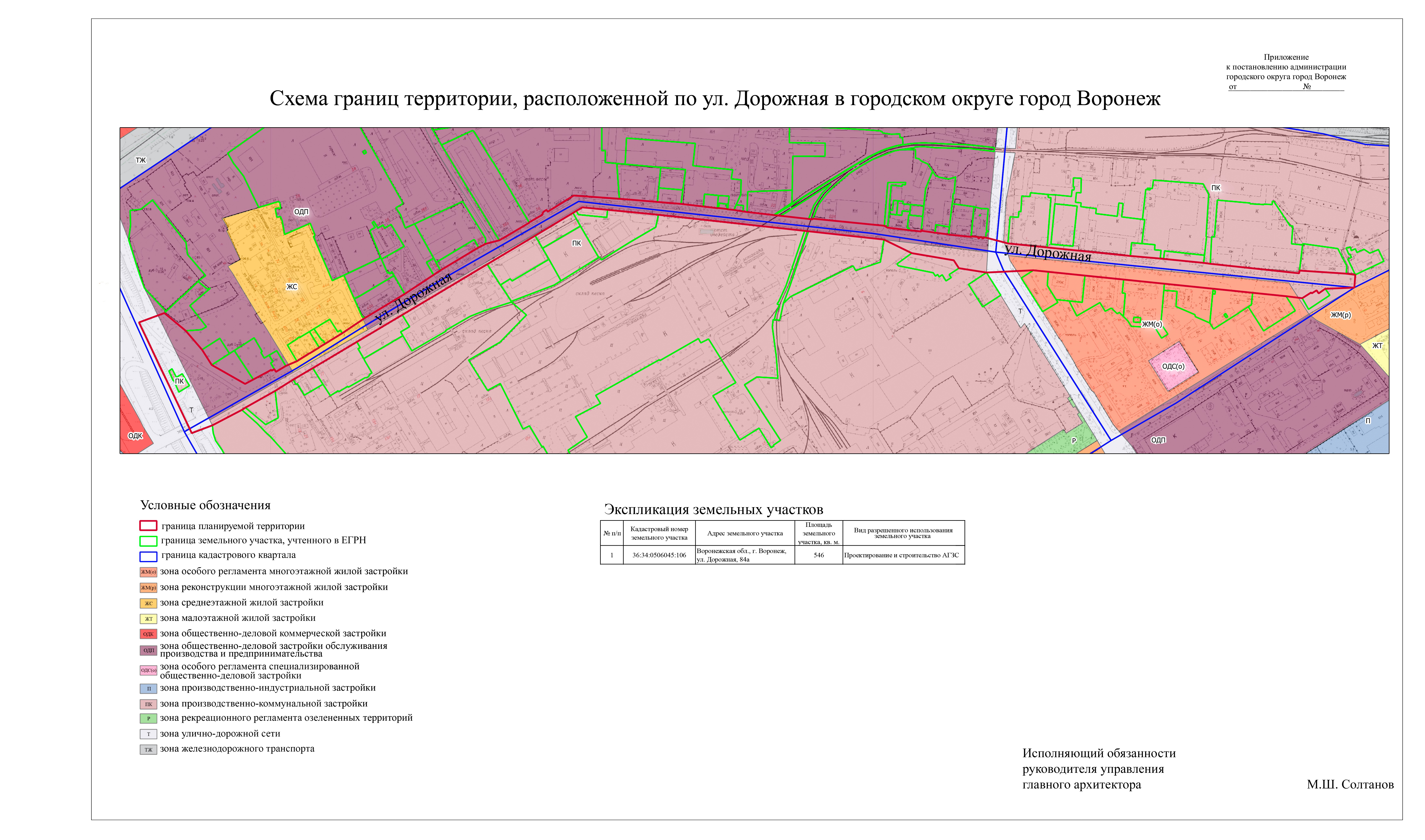 Задание на подготовку документации по планировке территории, расположенной по ул. Дорожная в городском округе город Воронеж